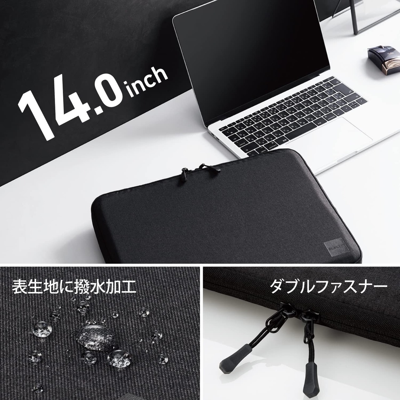 エレコム パソコンケース 14.0インチ MacBook Air M2/M1 13インチ MacBook Pro M2/M1 13~14インチ 360度保護 表面撥水加工 ダブルファスナー仕様 ブラック BM-IBSP14NBK
