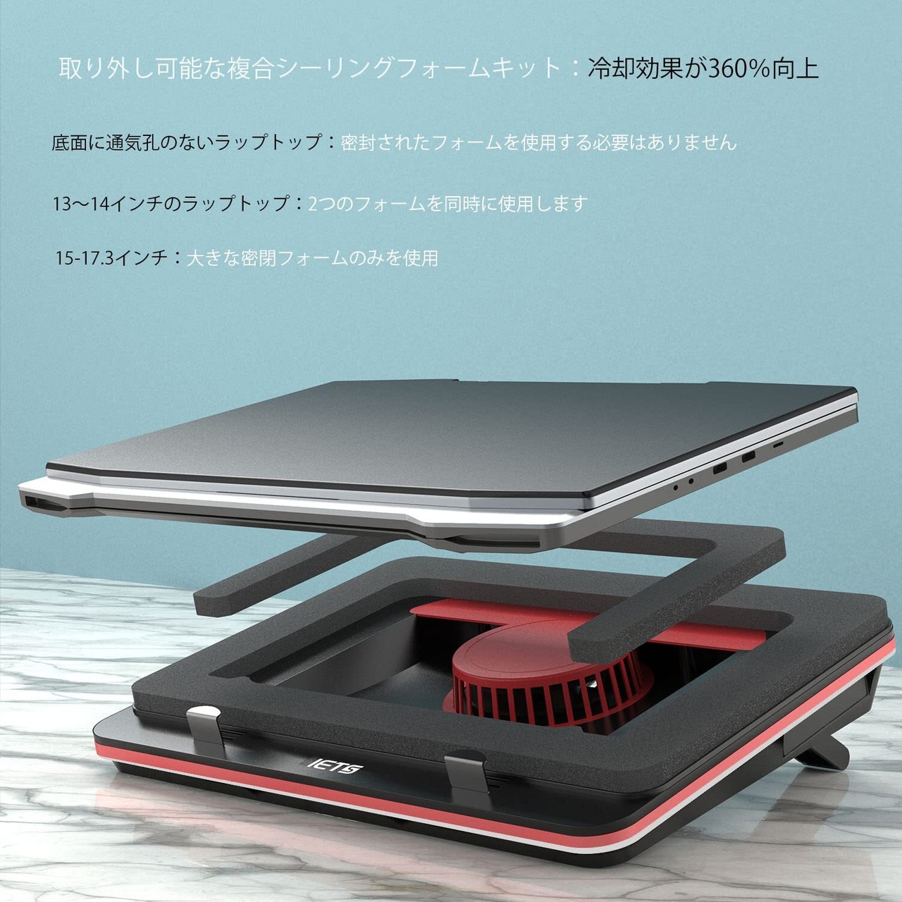 IETS GT500 ノートパソコン冷却パッド パワフルターボファン(5000 RPM)付きの冷却ファン 冷却台 急速冷却ゲーミングノートパソコン用シールフォーム 3ポートUSBハブ付き 風量調節可 7段階角度調節可 13-17.3インチノートPCクーラー(GT500V1・ハブ付き)