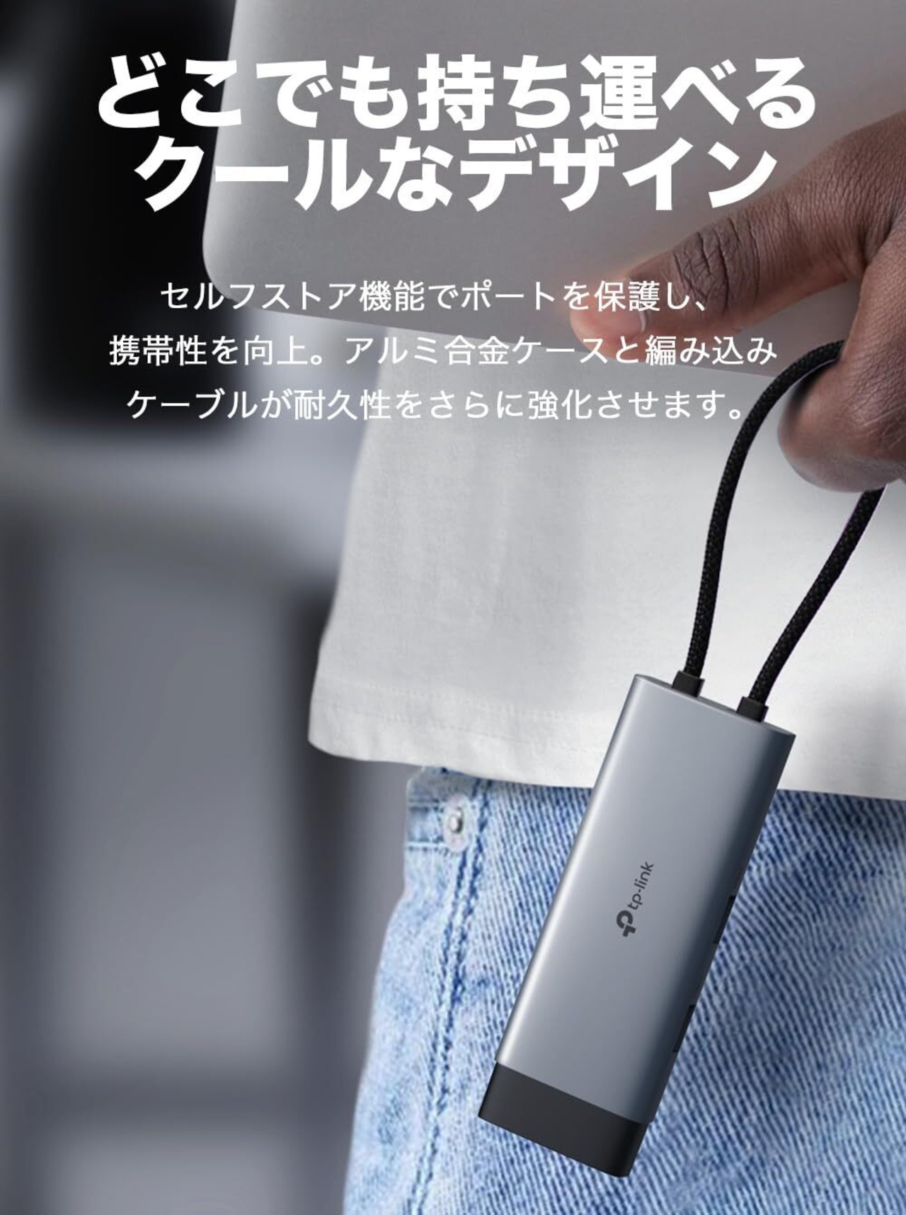 [強力な100W急速充電]UH6120Cに充電ケーブルを接続し、ファイル転送やメディア再生中もPCに最大100Wの電力を連続供給。