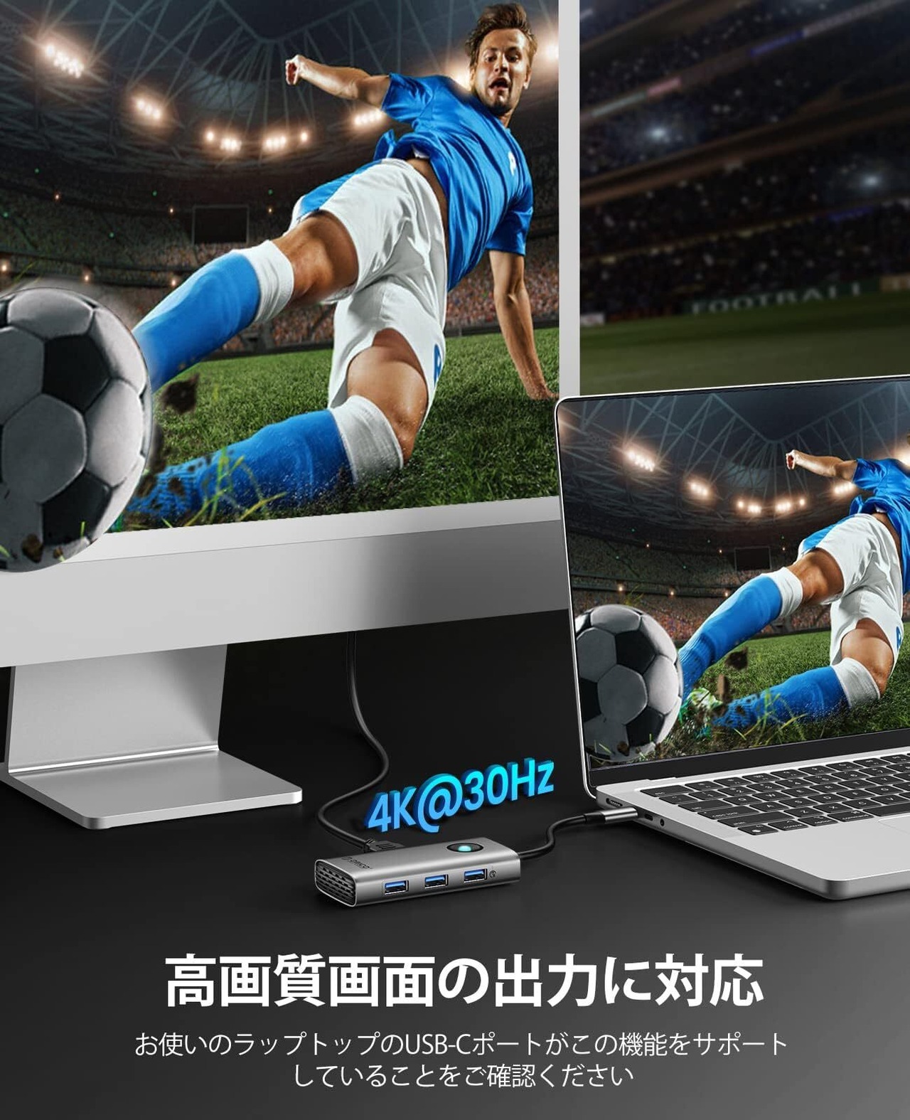 【高画質4K HDMI出力】:このusb hubは、ノートパソコンの画面を外付けの大画面にミラーまたは拡張して、4K@30Hzの超高解像度の映像を表示できます。備考:ミラーモードのWinOS、モニターの解像度はノートパソコンと一致します。