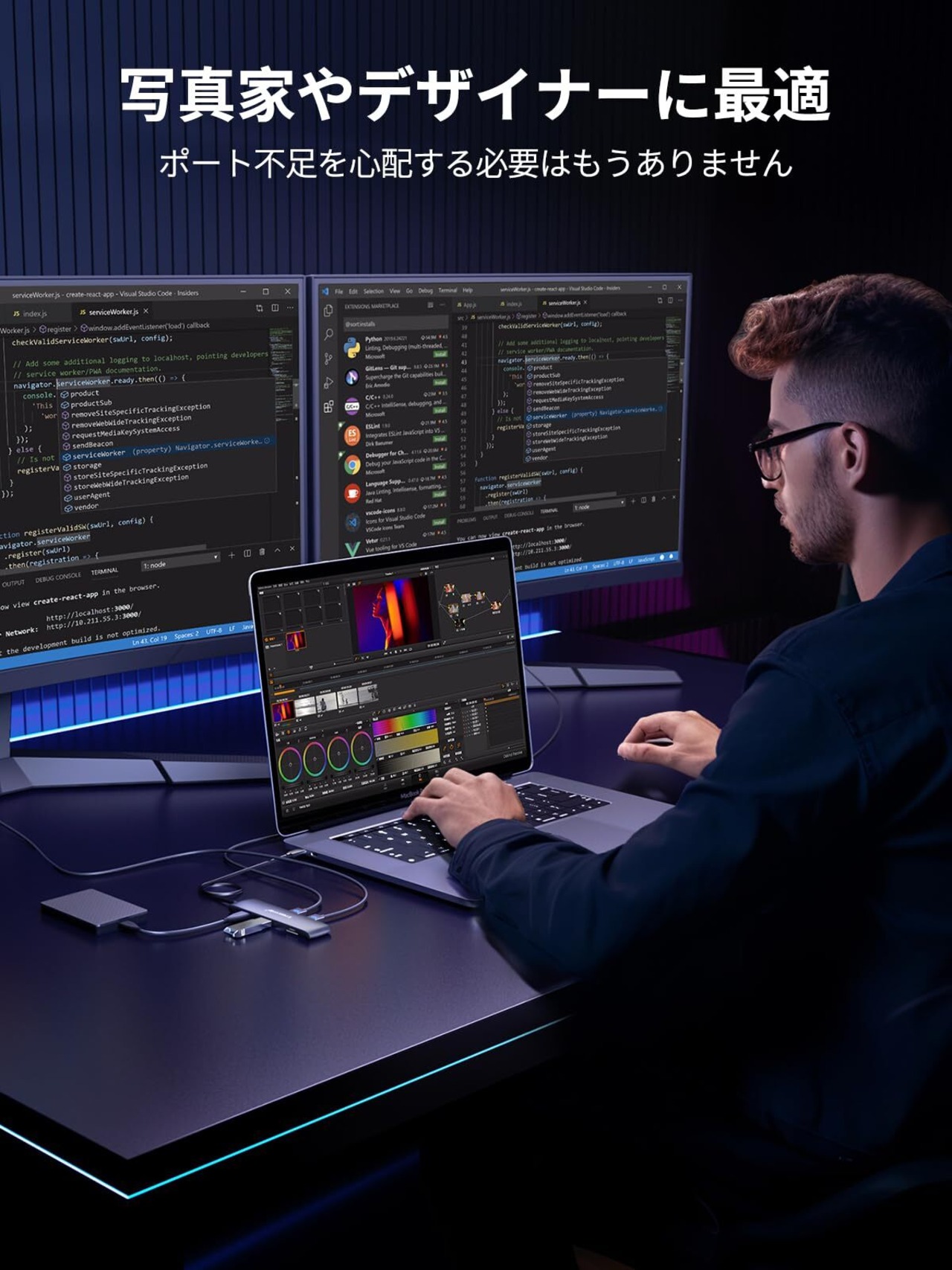 【Lemorele 12 in 1ラップトップ ドッキングステーション】 USB C Thunderbolt DockはラップトップのUSB C/Thunderbolt 3ポートを12ポートに簡単に拡張できます:2 x 4K HDMI、1080p VGA、3 USB 3.1(10Gbps)、1 USB 2.0、SD/TFカードリーダースロット、3.5mmマイクロロップ /オーディオジャック、USB C電源デリバリー100W、USB Cデータ転送(10Gbps)。 このThunderboltドッキングステーションはドライバーを設置する必要はありません。プラグアンドプレイだけで、毎日の使用を完全に満たしています。