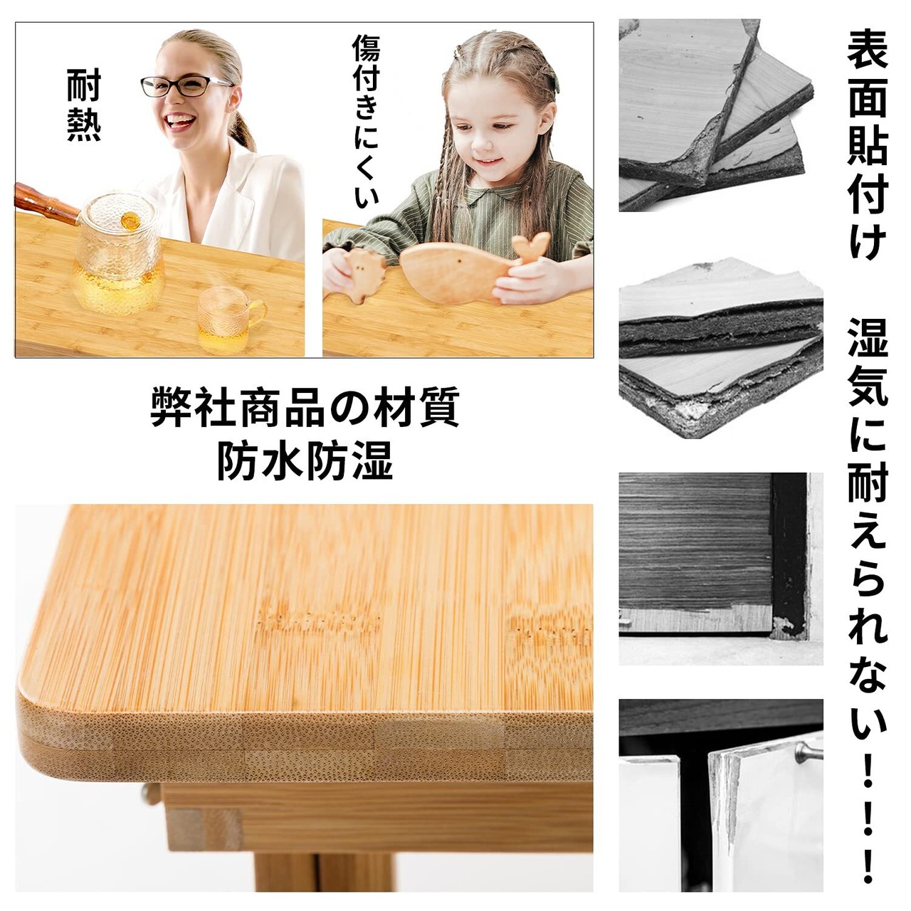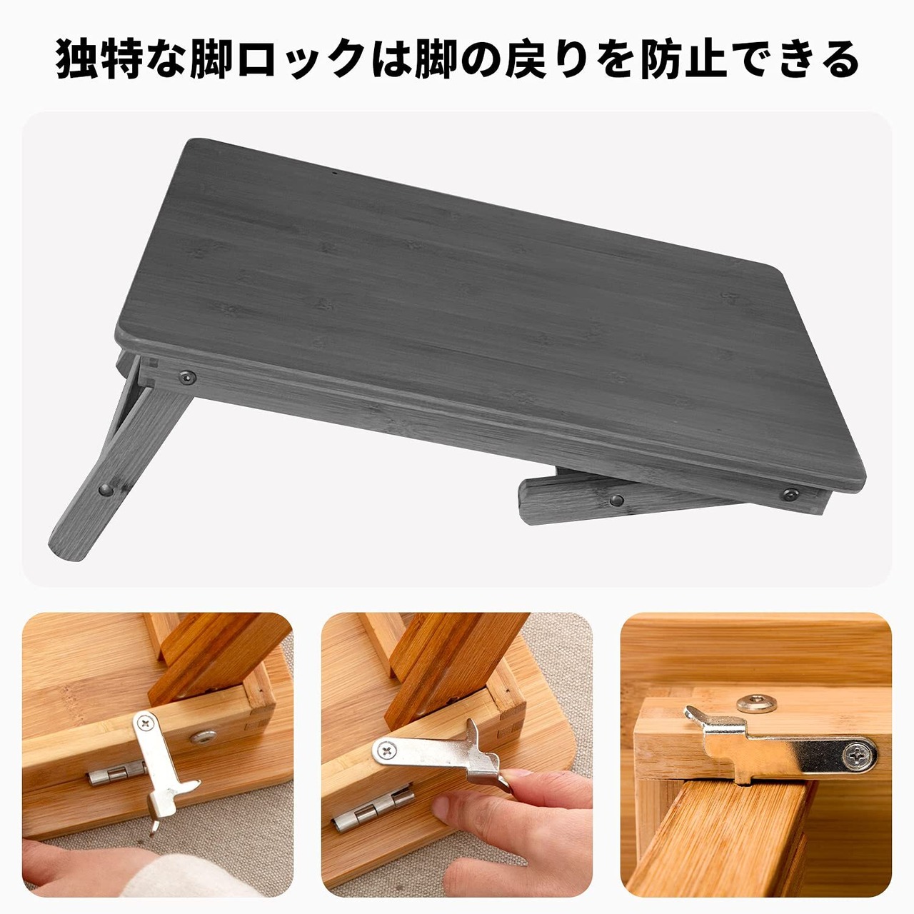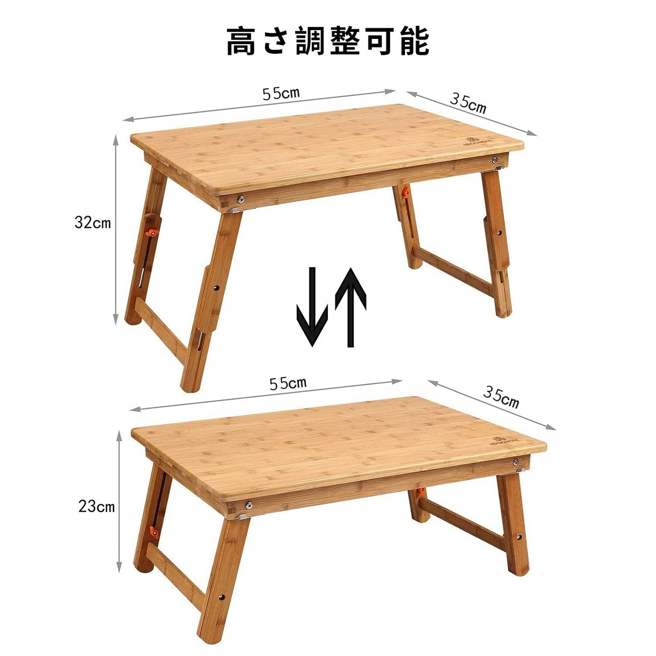 ノートパソコンデスク PCスタンド 傷付きにくい 竹製 ベッドテーブル ローテーブル 折りたたみ式 膝上テーブル 高さ調整可能 姿勢改善 多機能 持ち運び簡単 トレーテーブル ナチュラル シンプル デザイン キャンプテーブル 小型 ミニテーブル (55*35cm)