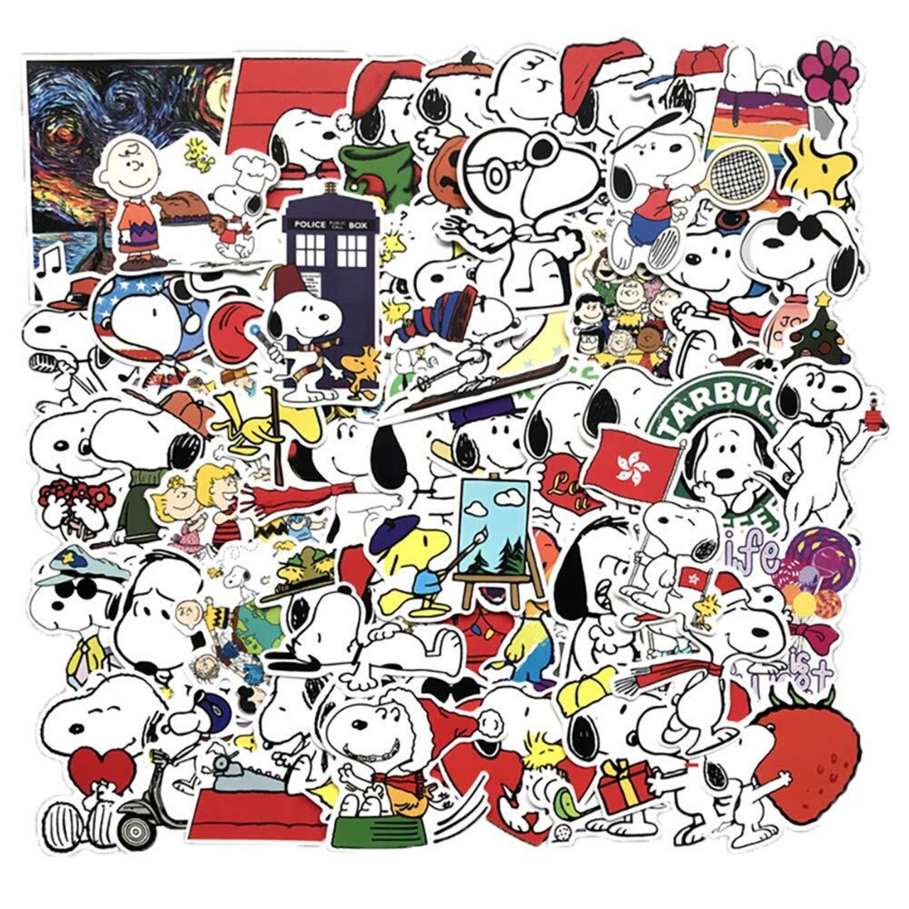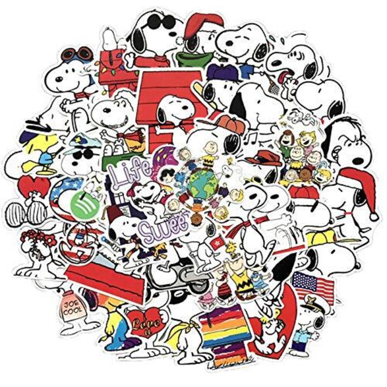 スヌーピーステッカーセット 62枚入り 防水デカール シールパック スーツケース ノートパソコン バイク ヘルメットなど適用
