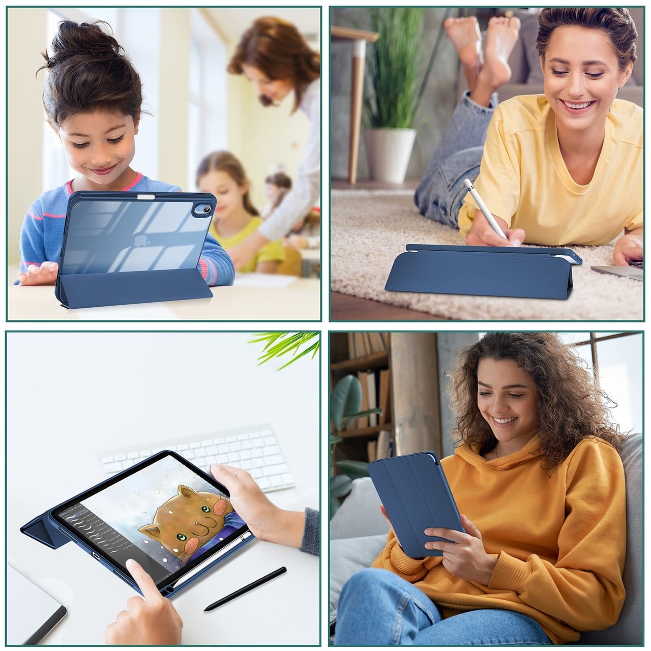 透明でつや消しのPCバックカバーはアイコンを表示し、iPadを衝撃、指紋、引っかき傷から保護します。内蔵したマグネットにより、オートスリープ/ウェイクに対応します。