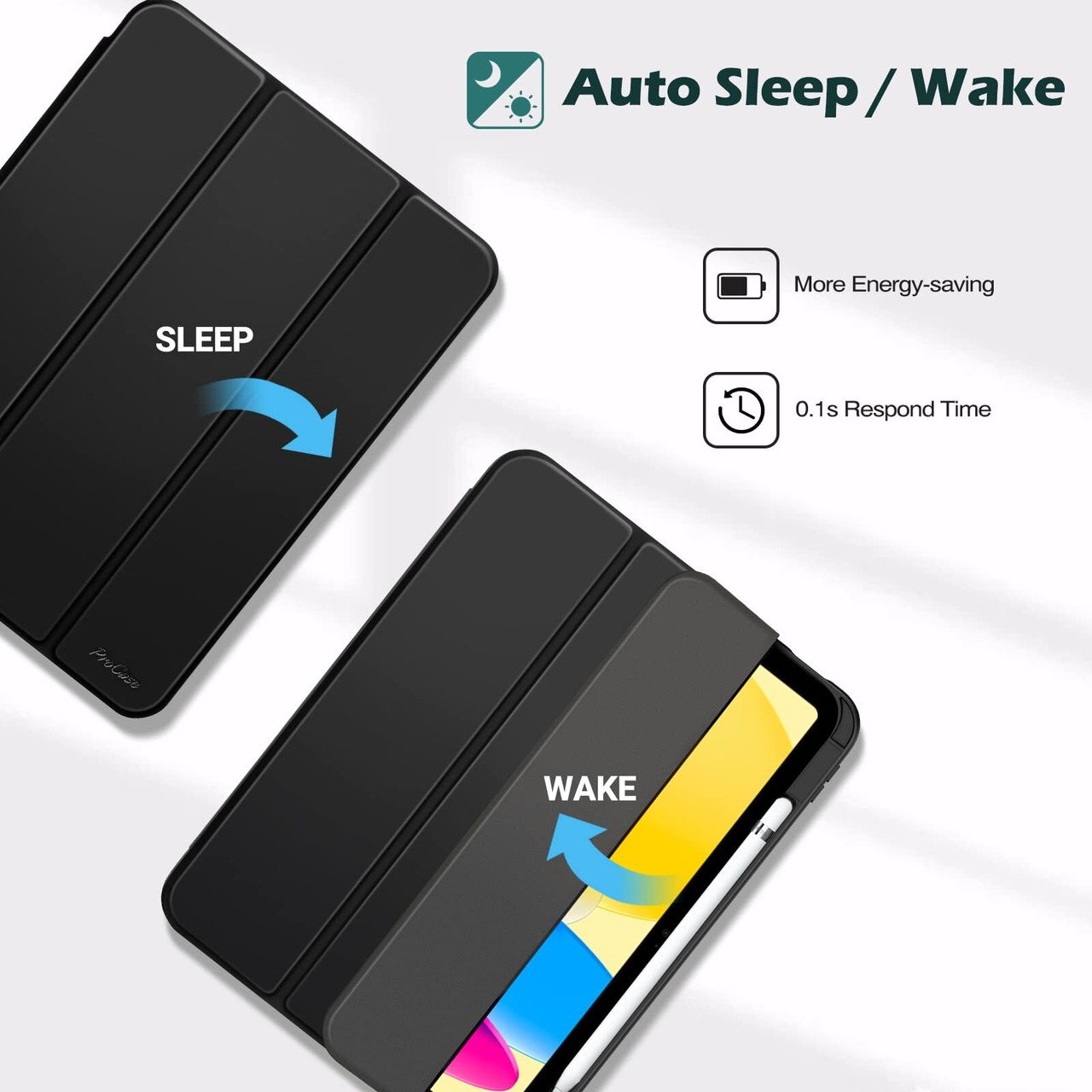ProCase iPad 11世代/10世代 ケース iPad(A16)11インチ 2025/10.9インチ 2022通用 A2696 A2757 A2777 ペン収納 耐衝撃 三つ折り スタンド スマートカバー(ブラック)