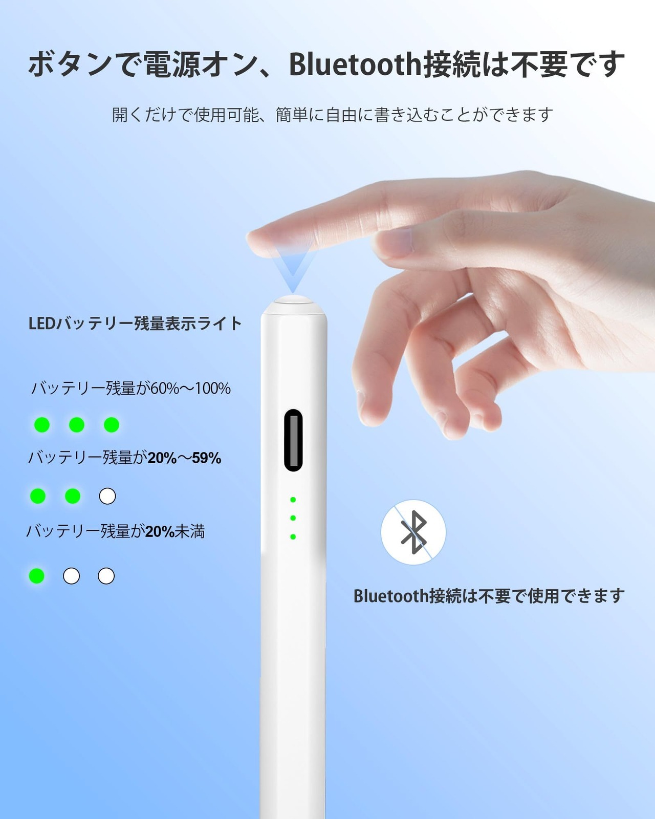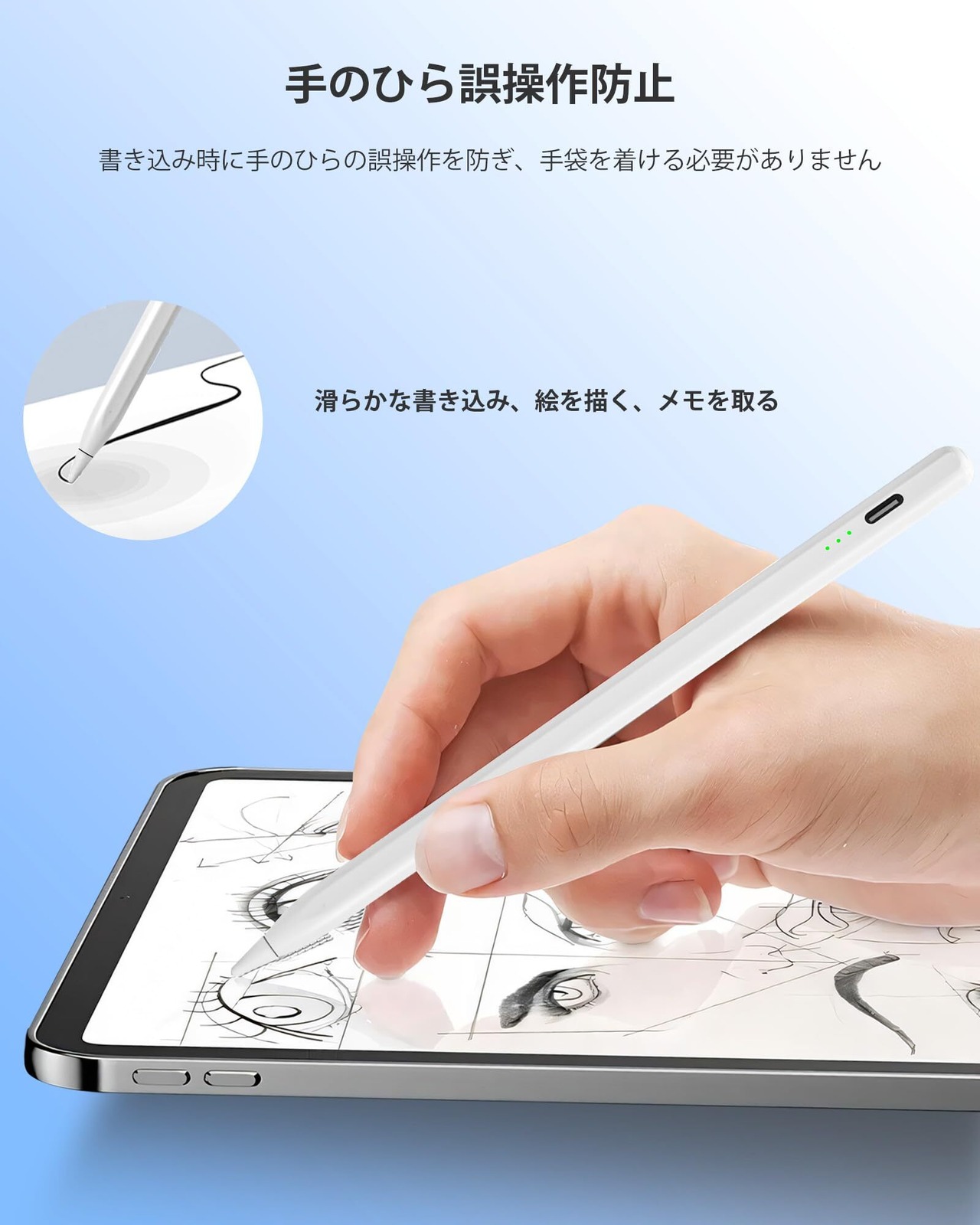 iPadペンシル2018-2025対応, 13分急速充電アップルペンシル, 手のひら誤操作防止, 傾き感知, 磁気吸着, 5分自動スリープ 長時間使用, iPad タッチペン第11 (A16)/10/9/8/7/6世代、Air 11"/13" M2/M3 2025 /Pro 11"/13" M4 2024 、Mini 第7/6 Gen、Air 3/4/5 Gen に対応