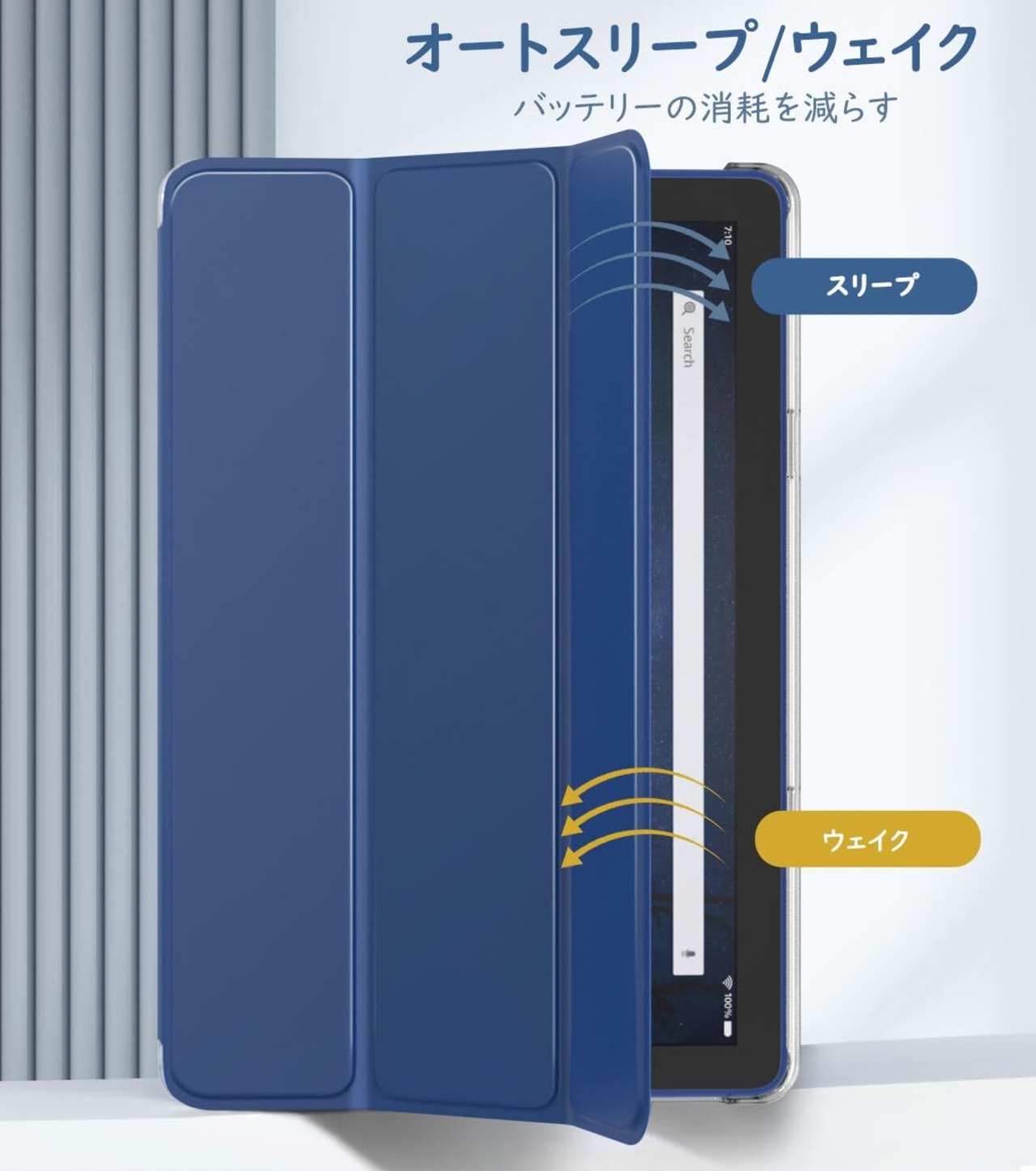 「省エネなオートスリープ機能」 内蔵されるマグネットより、ケースの開閉より自動的にウェイク・スリーブになるスマートなオートスリープ機能がついており、バッテリーの消耗を減少し、待機時間の延長には一役を立ってくれます。