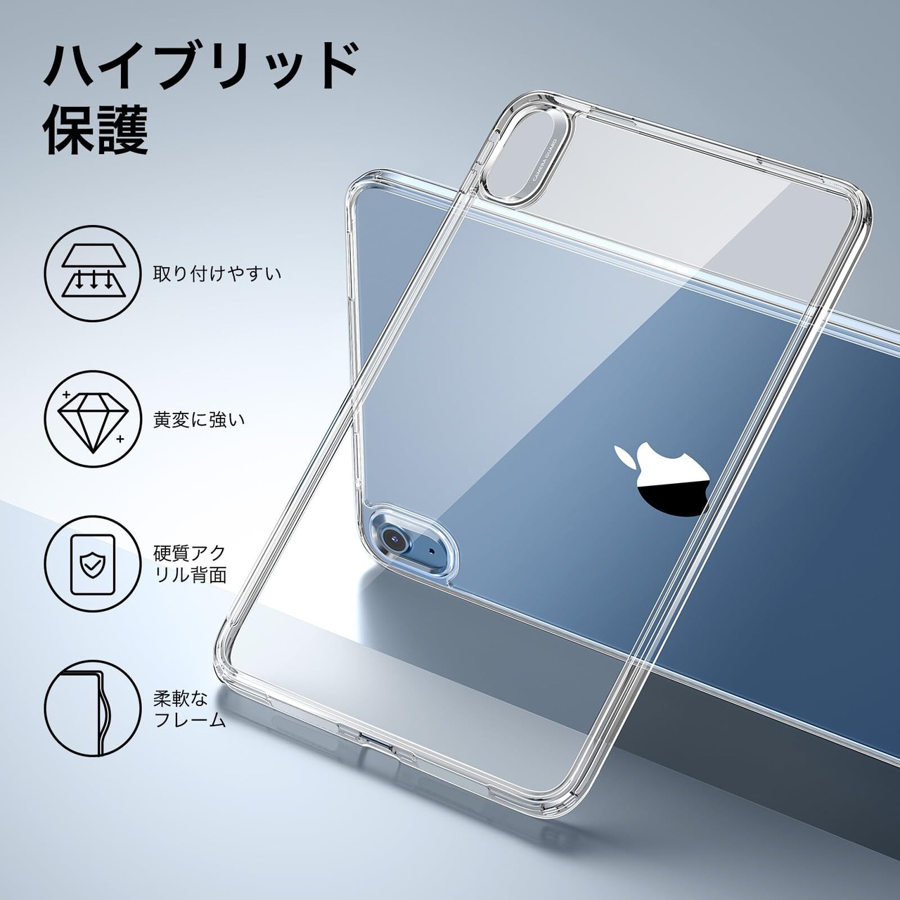 ESR iPad 11世代 ケース A16 (11インチ、2025モデル) iPad 第10世代 (10.9インチ、2022モデル)専用カバー 薄型軽量 耐衝撃・耐落下保護・耐黄変 ハイブリッドケース ハード背面とソフトフレーム Pencil対応 クリア