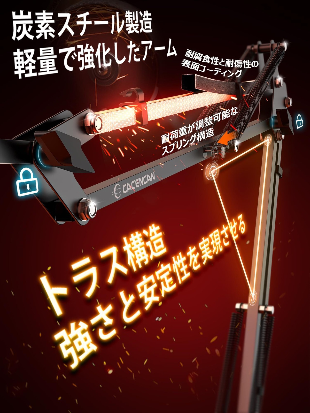 CACENCAN S01 タブレット スタンド タブレット アーム 寝ながら ベッド用 スマホスタンド アーム 横/縱き/仰向け 4~13.5インチ対応 for iPad Pro/Mini/Air&Kindle&N-Switch&android surface&iPhone 多機種対応 日本語取扱説明書 黒色