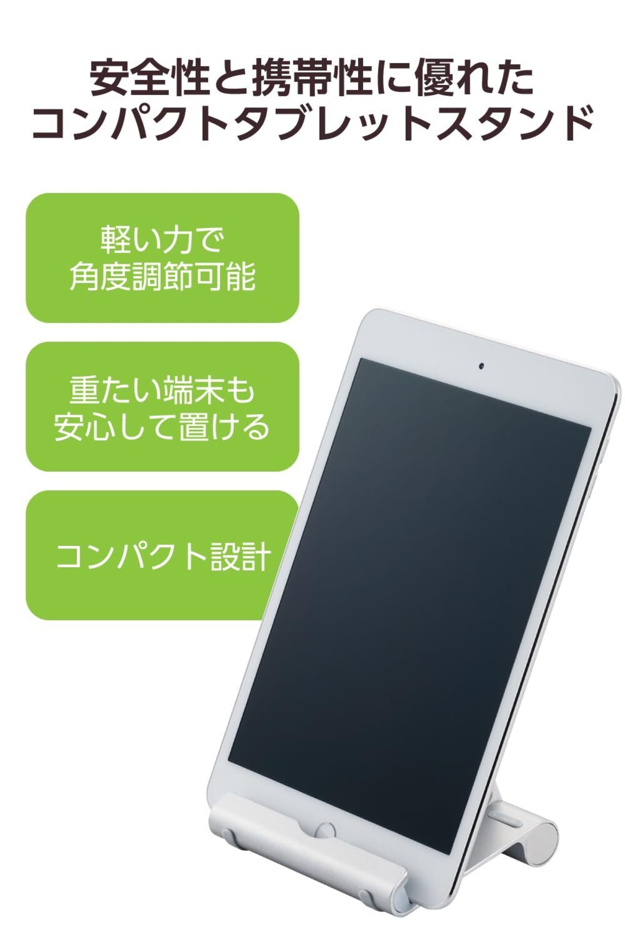 重い端末でも安定して置けるスマートフォン・タブレット用コンパクトスタンドです。