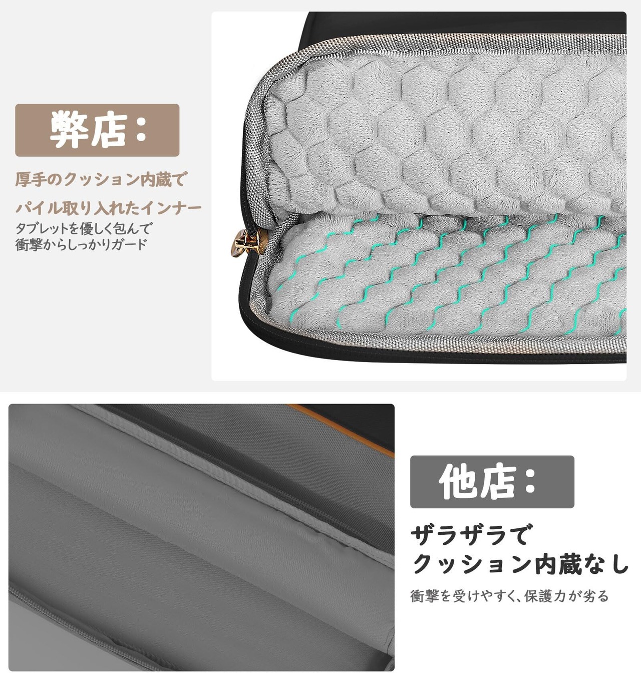 「9~11インチまでのデバイスに対応」当商品は外寸29*22*2.5cmで内寸27*20cmとなる主にタブレットを収納用保護インナーバッグです。iPad Pro M4 2024/iPad Air M2 2024/iPad Air 5/4 10.9/Air 3 10.5/iPad 10/ iPad 9/8/7 10.2/Galaxy Tab S8/S9/S9 FE/Tab A9+/Surface Go 2/3 10.5/Fire HD 10/10Plus/Fire max 11 2023などの9~11インチまでのノート・タブレットPCに適用しております。ご購入になる前に、お使いのデバイス機種モデルと寸法をしっかりと確認してください。