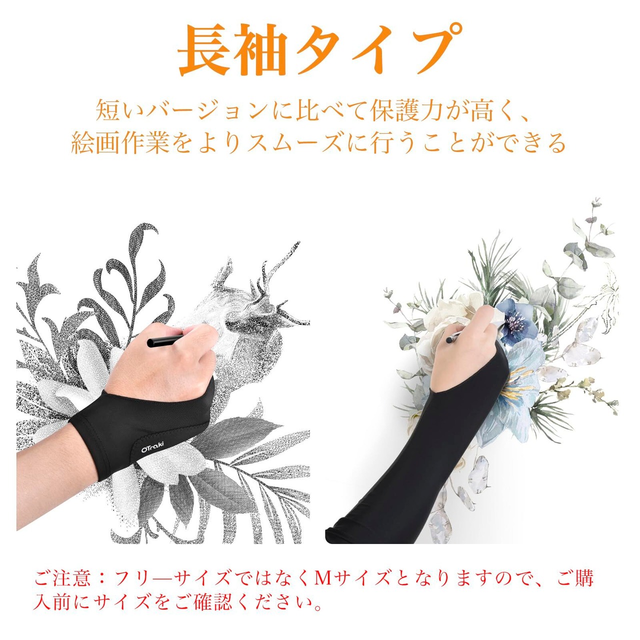【全面保護】長袖タイプのお絵描きグローブはショートタイプに比べてアーム上の部分の汚れや誤った取り扱いを防ぎつつ、描画中のスムーズな操作を楽しむことができます。ご注意:フリ—サイズではなくMサイズとなりますので、ご購入前にサイズをご確認ください。