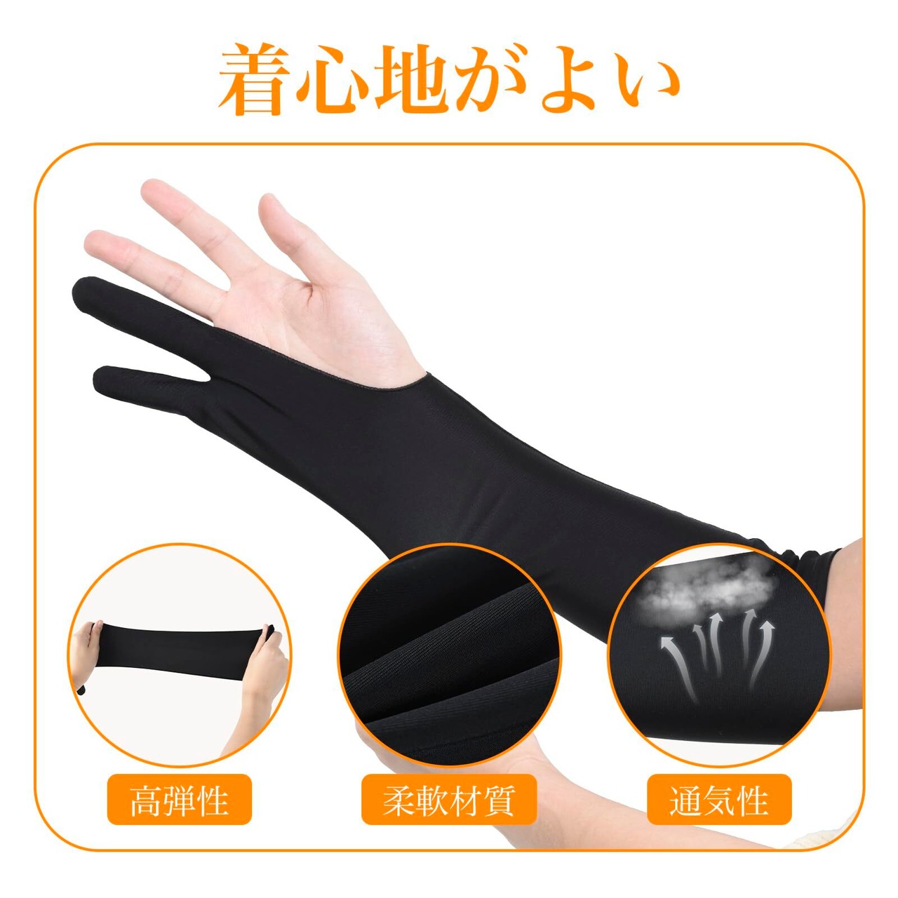 [OTraki] お絵描き手袋 長袖タイプ 2枚入 黒 お絵描き ipad 絵の初心者用 タブレット用手袋 10.5x42cm 防汗 左右兼用 2本指グローブ 全面保護肘 お絵描き 汚れ防止 for ipad paint gloves ブラック