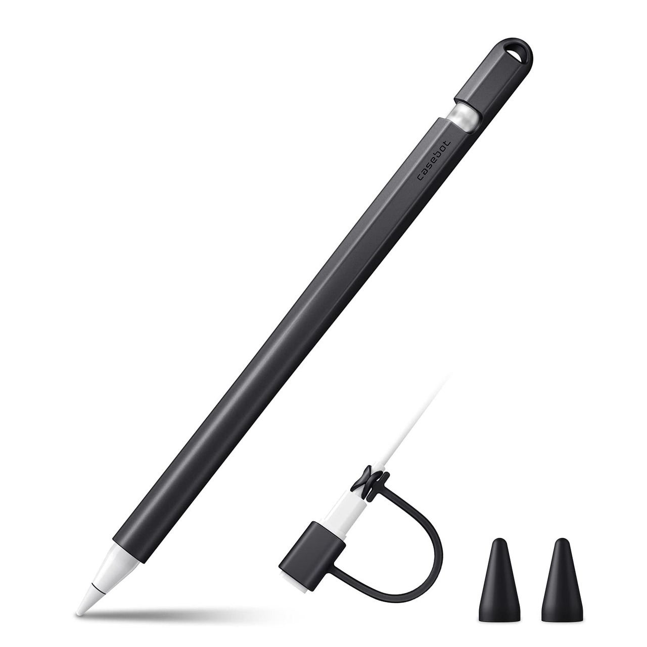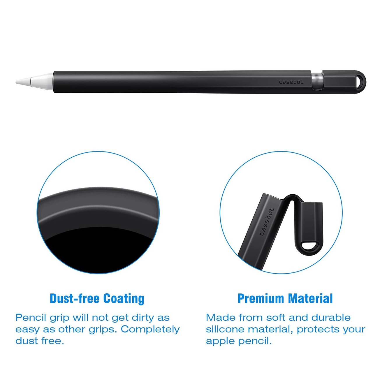 Fintie for Apple Pencil 第1世代用シリコン保護ケース カバー グリップ ホルダー 握りやすい 軽量 全面保護 紛失 落下防止 スリーブ ケース ペン先カバーとUSBケーブル連接カバー付き (ブラック)