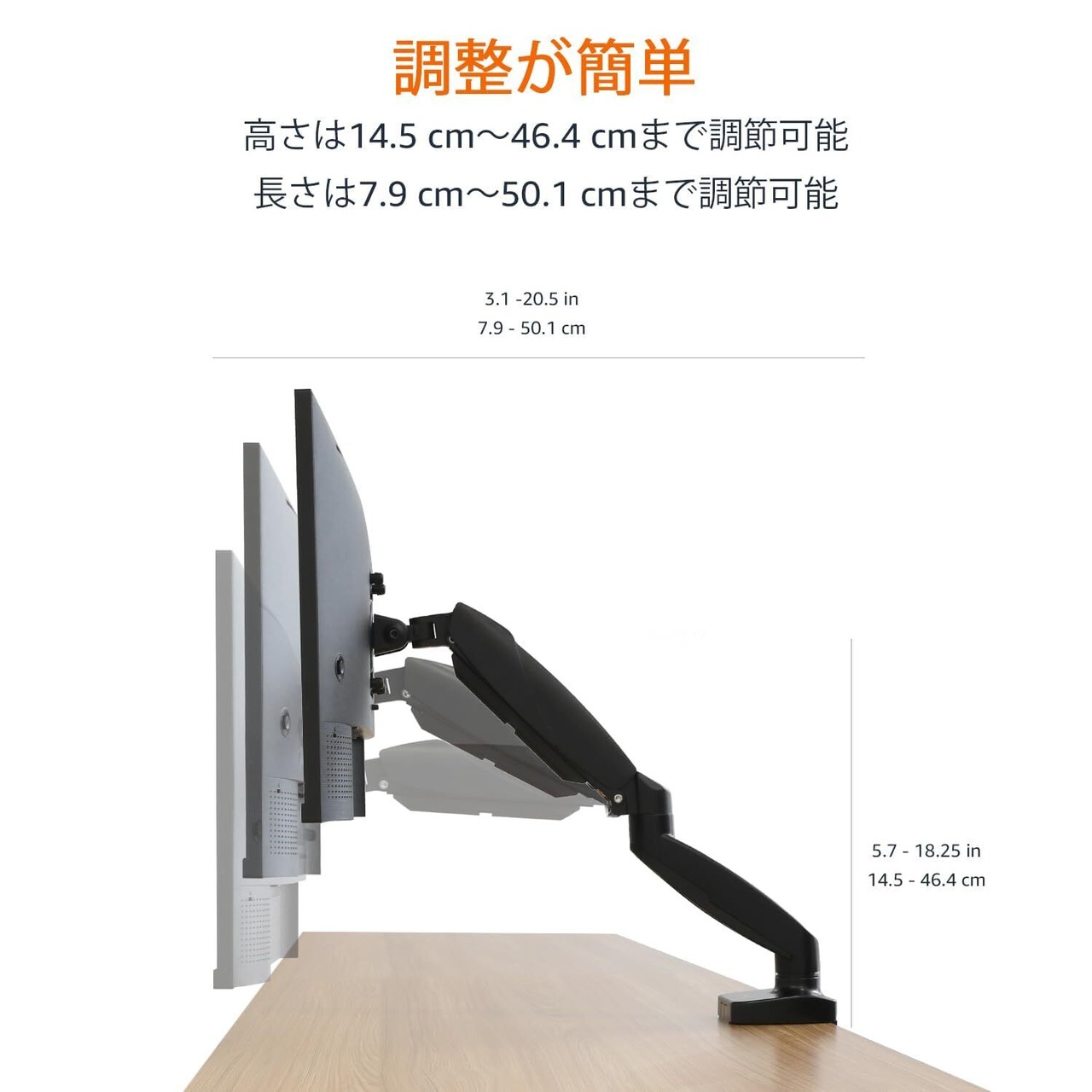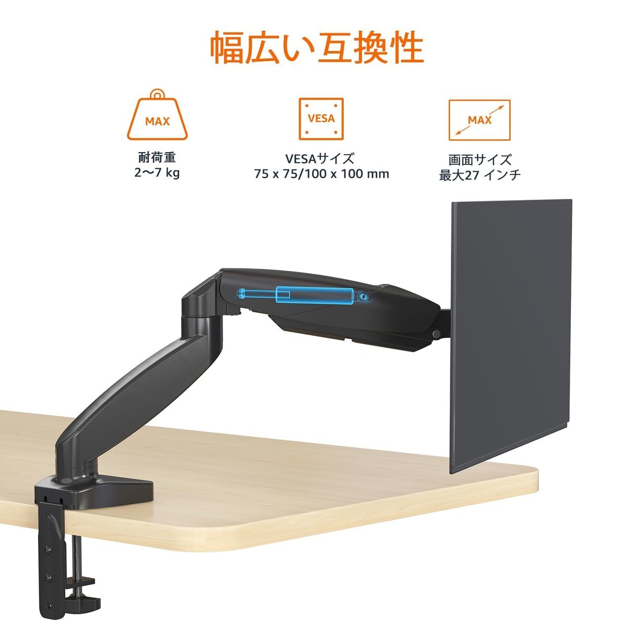 ベーシック シングルモニターアーム ガススプリング式 (最大27インチ) デスク設置用 ブラック