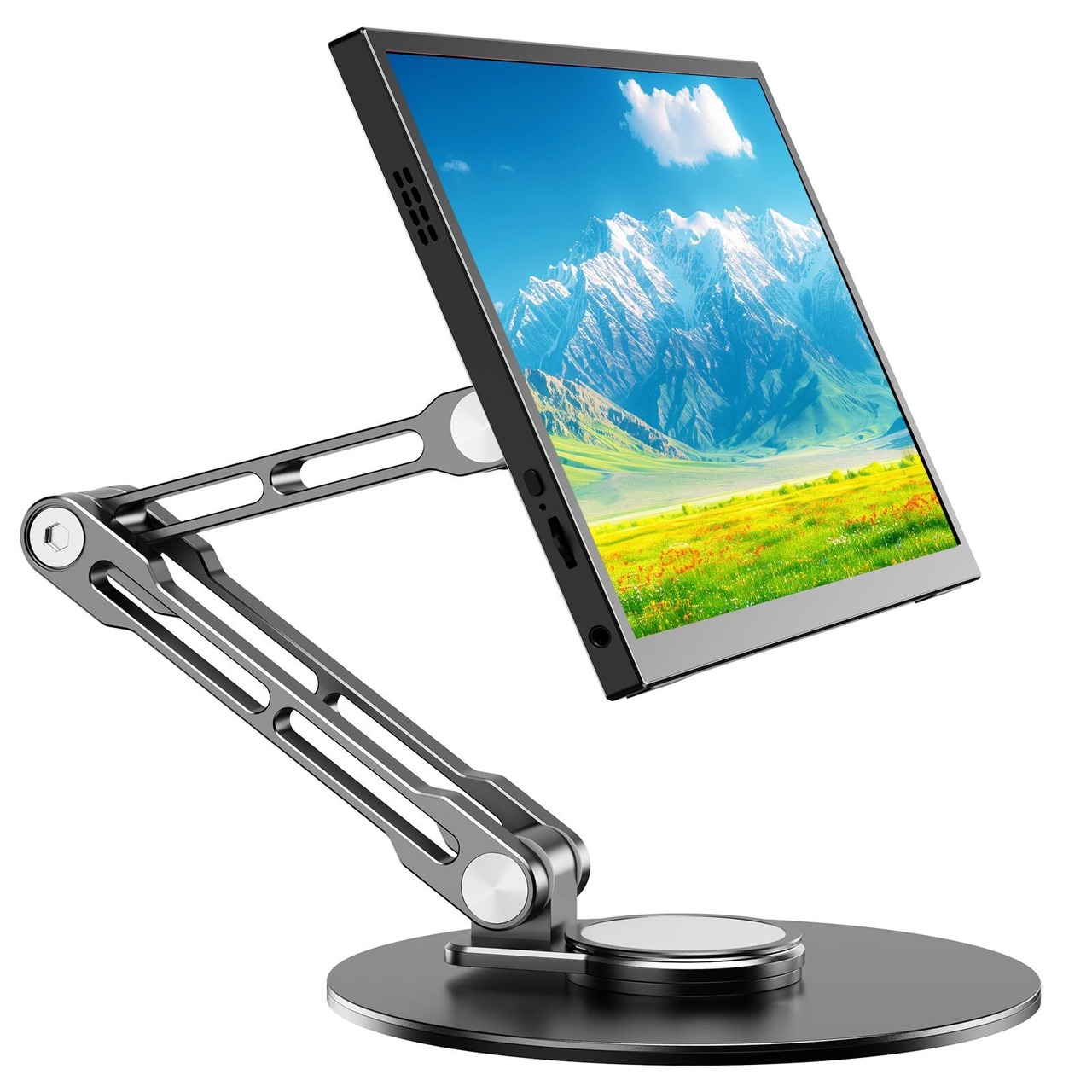 Newsoul モニターアーム VESA モバイルモニタースタンド 卓上 持ち運び モバイルディスプレイアームスタンド 自立式 2段 ベーシックスタンど シングル 置き型 31.8CM高さ調整 18.5インチ以下対応 耐荷重1.3KG VESA間隔75MM/100MM ネジ穴深さ3MM