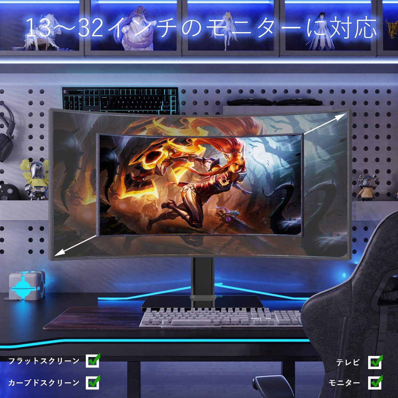 シングルLCDコンピュータモニター、独立型スタンドスタンド、13 "〜32"画面用、回転式、高さ調節可能、回転