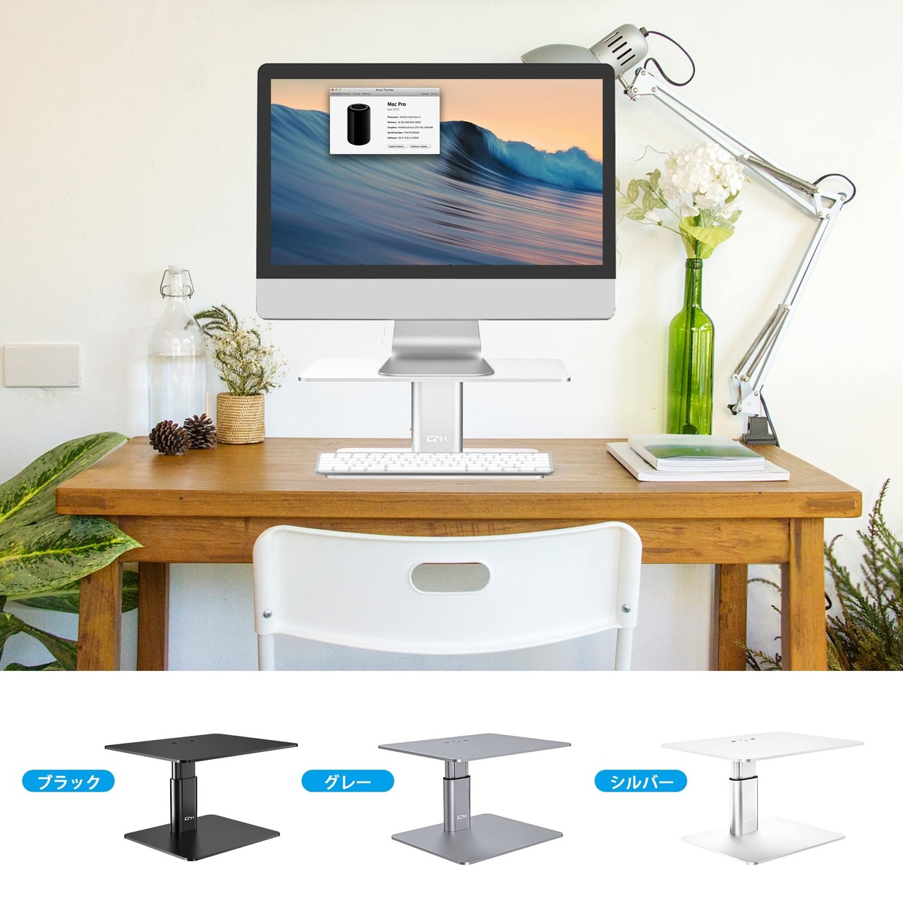 【シンプルなデザインで馴染みやすい】:派手さがないマッドブラックと銀灰色の2色が用意しており、表面はなめらかで上質感があり、デザインもシンプルでオフィスや自宅など様々なインテリアに馴染みやすいです。実用性と美観を兼ね備え、モニタースタンドとして利用だけではなく、ノートパソコン、プリンター、テレビ、タブレットの台としても幅広く使えます。