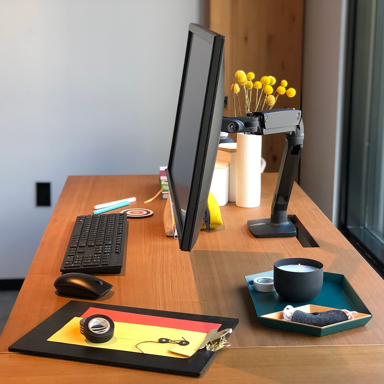 スタイリッシュなデザインでホームオフィスにもマッチするMXVモニターアームは、LXアームよりスリムなつくり。エルゴトロン独自のコンスタント・フォース技術により、ガススプリング式のような経年劣化がありません。