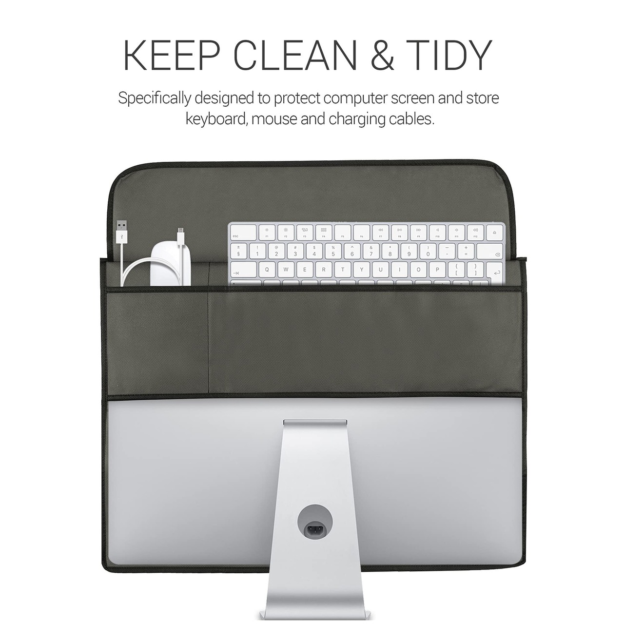 シンプルで機能的なデザイン: 大きく開いた開口部によりスムーズに着脱可能、アンチダスト性能によりいつまでもキレイに、シンプルなデザインに便利な収納ポケット付き。kwmobileの液晶モニター保護カバーで快適なPCライフを。