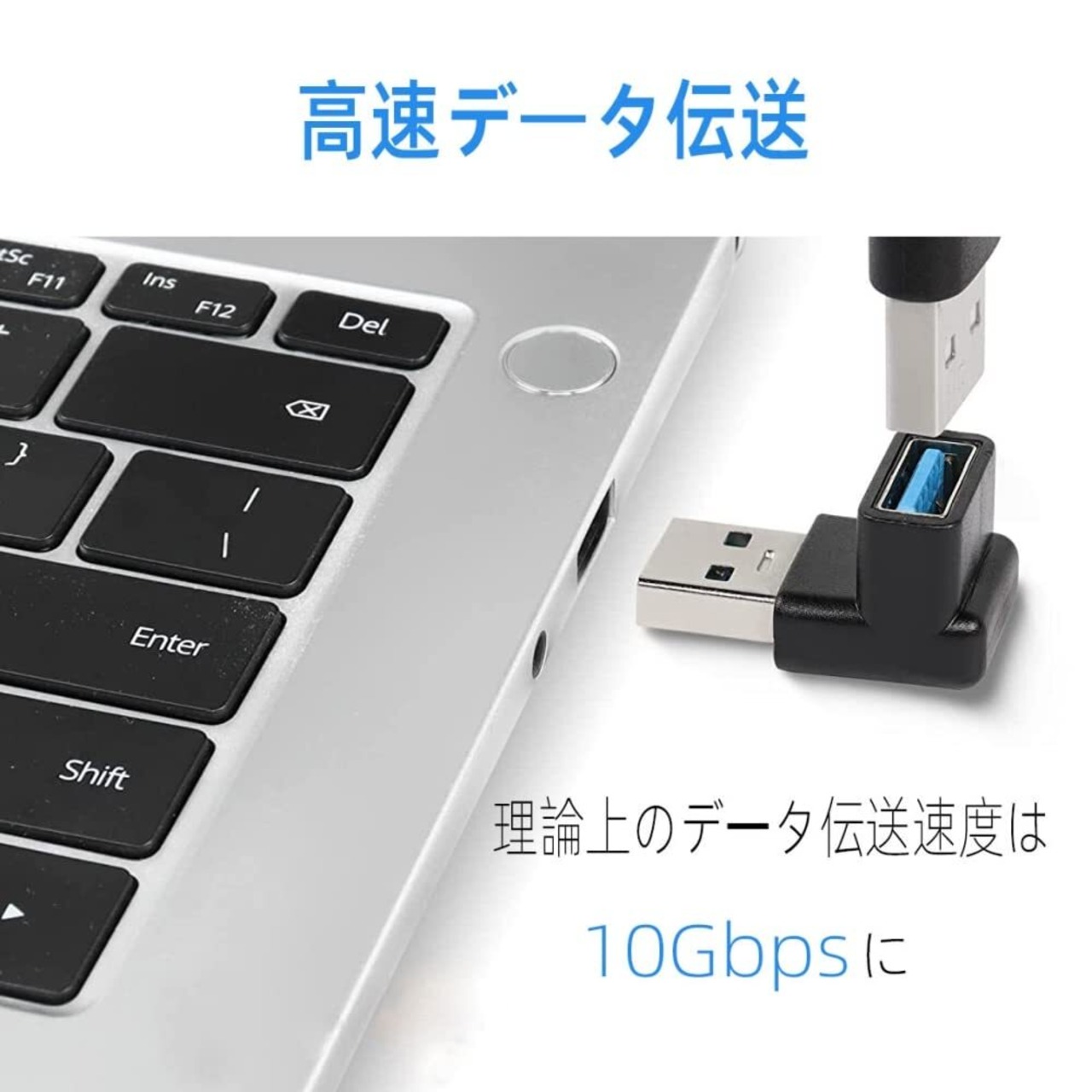 YFFSFDC USB 3.0 アダプタ L型 アダプタ 2個セット USB 直角変換 USB Type A L字型変換アダプタ 小型 軽量 タイプA オス メス 10Gbps 高速データ伝送アダプタ 延長電源データ ビデオアダプター 90度上向きタイプ