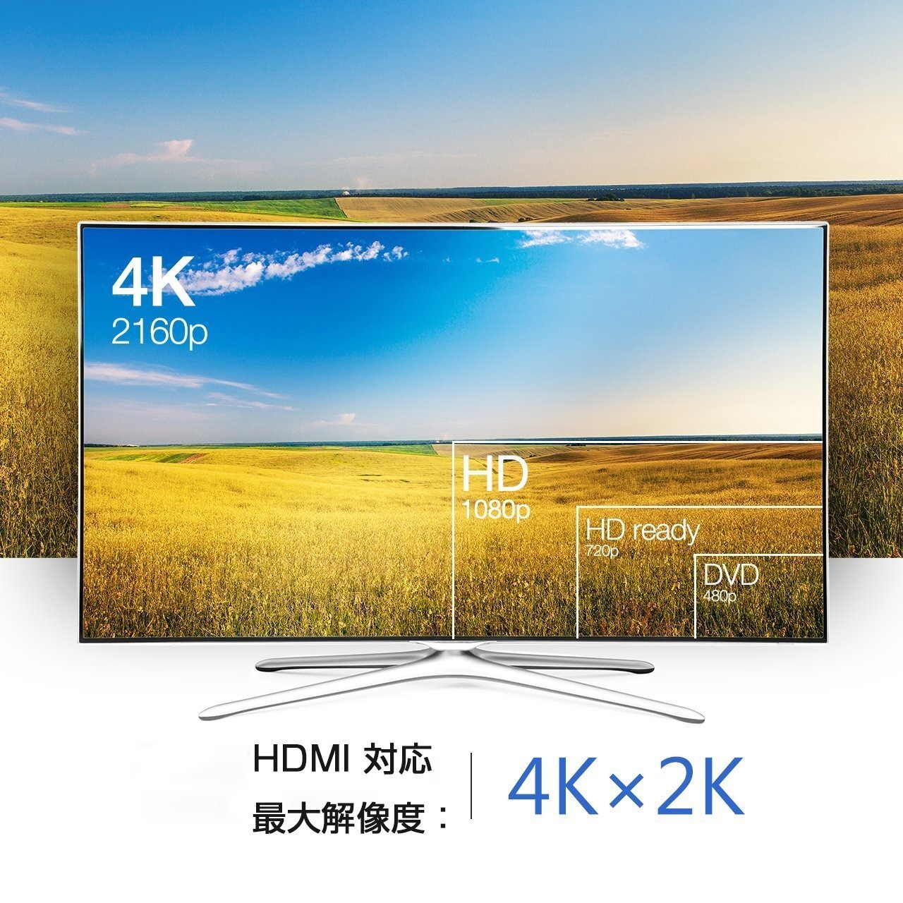 【高解像度ビデオを再生】4K×2K、3D対応、音声と画像両方を転送し、パソコンの映画やゲームを大きなスクリーンで楽しみに最適です。HDMI V1.4に対応します。