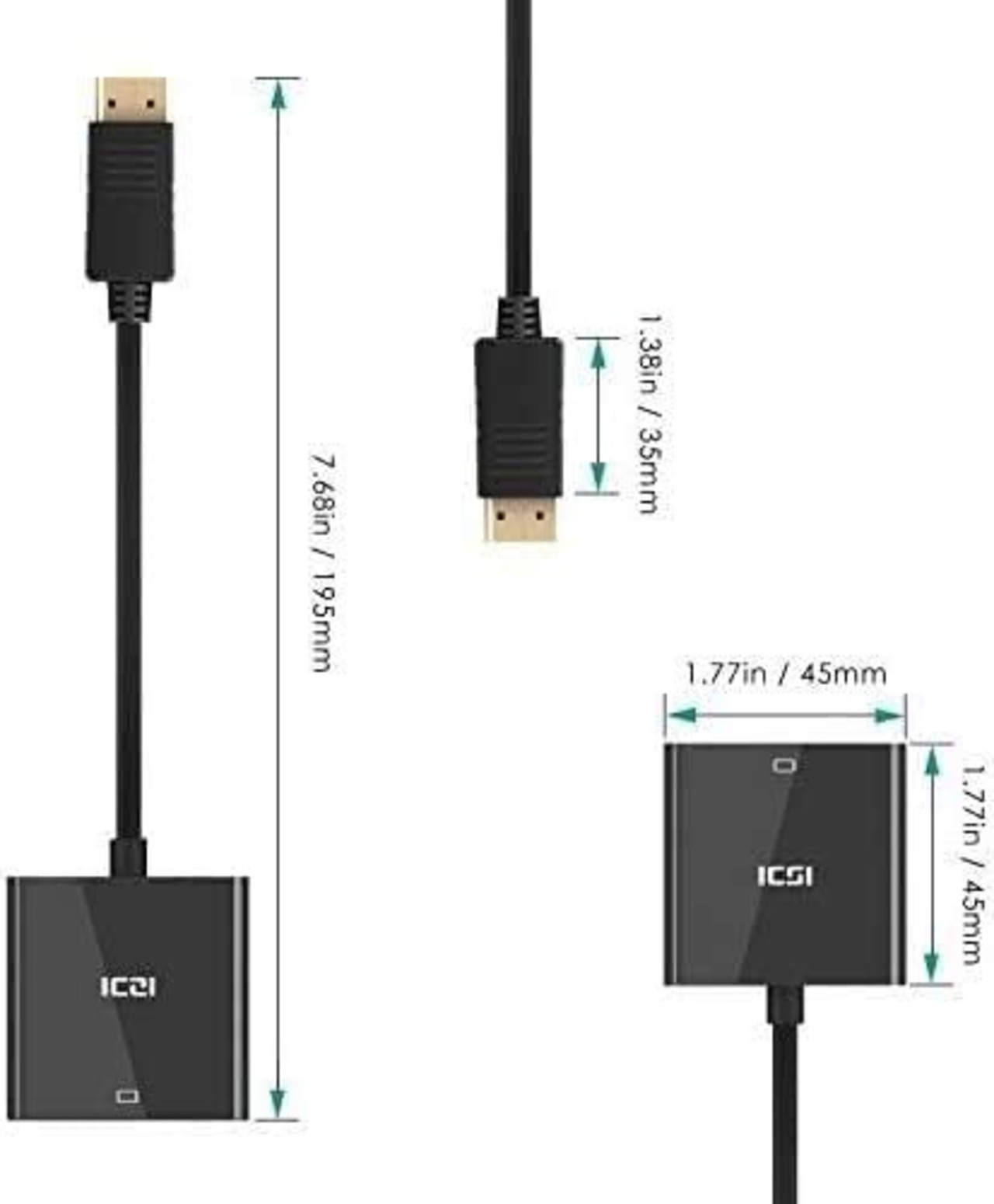 ICZI Displayport VGA変換アダプタ ディスプレイポート VGA 変換アダプタ 最大解像度 1920×1080サポート MacBook Pro Microsoft Surface Pro/Pro 2/Pro 3 Lenovo ThinkPad Google Chromebook PCなど対応dp vga 変換
