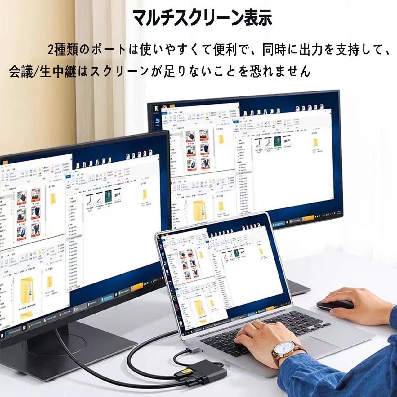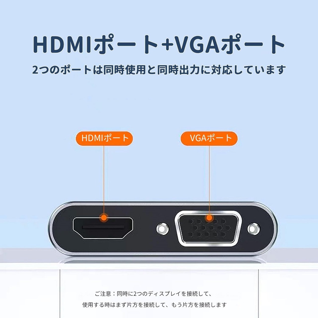 【HDMI VGA同時出力可能】:HDMIビデオとVGAビデオの同時出力に対応しています。最大解像度1080p。拡張モードに対応し、画面を複数のディスプレイに分割することで、まるで仕事を2つ進めるように作業効率を2倍にすることができます。複数のディスプレイに同じ画面を表示するミラーモードで、大画面で映画を楽しむことができます。(ご注意:オーディオ同時出力はVGAでは対応していませんが、HDMIのみ対応していますのでご注意ください)