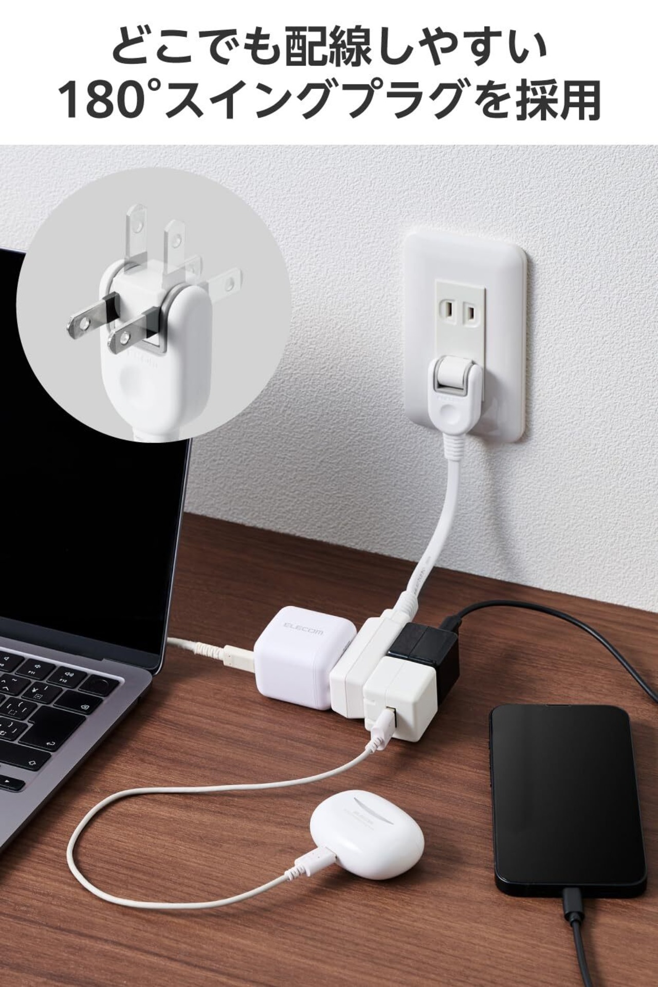■狭い場所でも配線しやすい180度スイングプラグを採用しています。