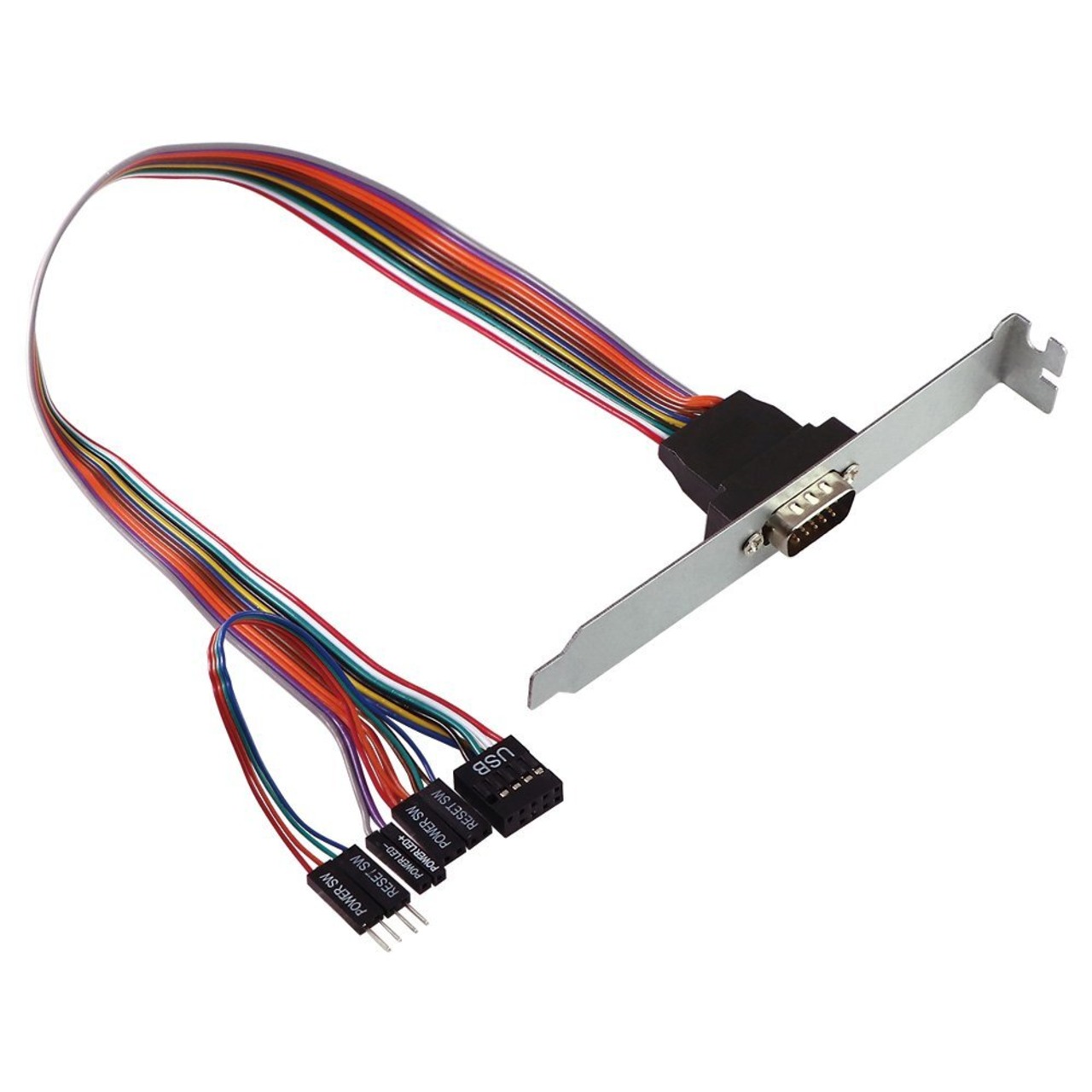 内部接続用ケーブル付きブラケット : 1、フルハイト用ブラケット 2、ミニD-Sub15ピンコネクタを使用した専用ケーブル 3、電源スイッチ: 2ピンコネクタ メス、2ピンコネクタ オス 4、リセットスイッチ: 2ピンコネクタ メス、2ピンコネクタ オス 5、電源LED: バラ2ピンコネクタ メス 6、USB 2.0: 2x5ピンコネクタ メス 7、ケーブル長: 約30cm