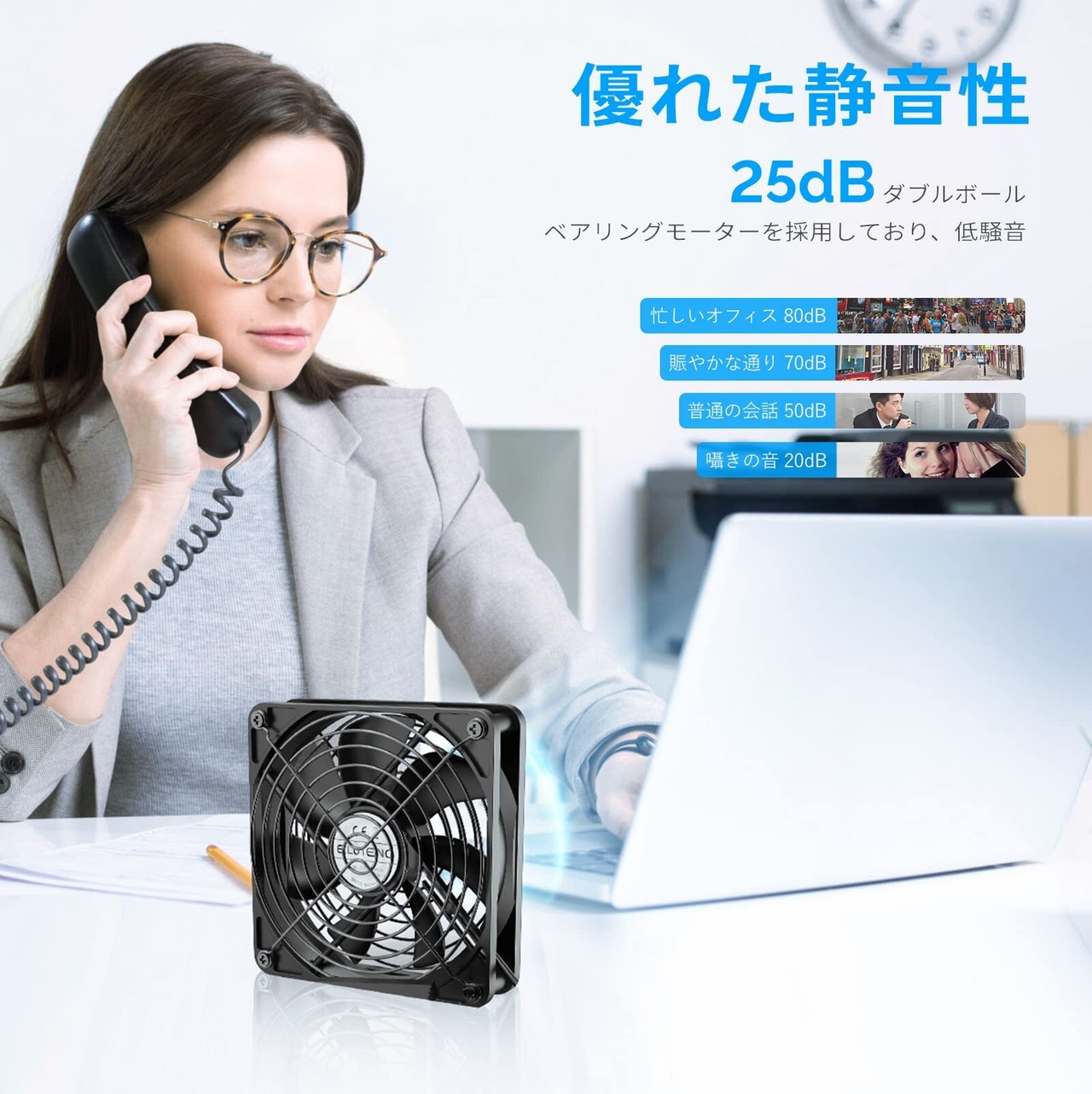 【7枚羽根&安定した風量】7枚羽根で安定した風量を確保します。パソコン、ルーター、HDDなどの機器はもちろん、AV機器やゲーム機などの電子設備を速やかに冷却できます。