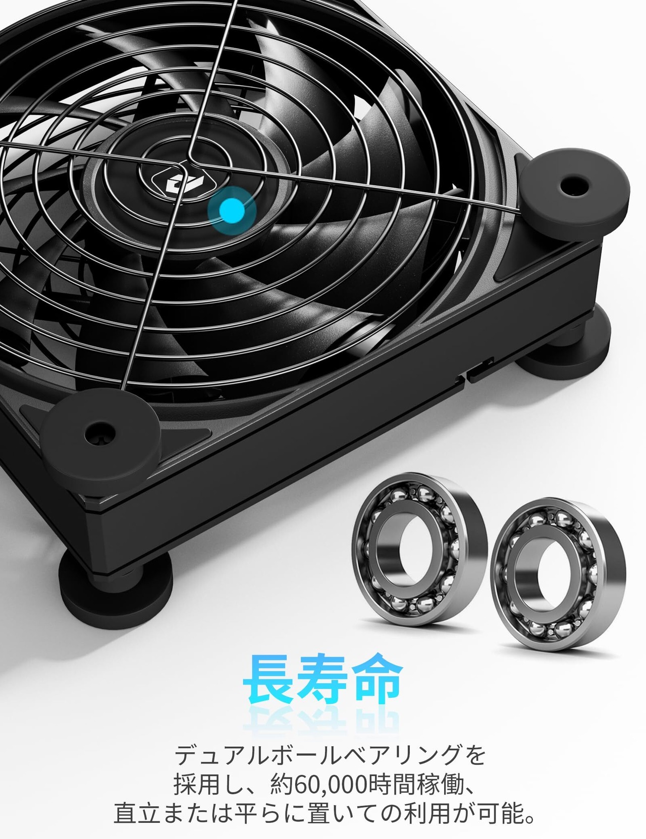 【高品質ベアリング】ミニファンは省エネで静音設計、デュアルボールベアリングを採用、回転の安定性を確保するほか、冷却ファンのブレードが揺れる問題を解決し、ファンの騒音を最小限に抑えながら、必要なときに最大の冷却性能を提供し、冷却ファンの寿命を延ばし、約60000時間の理論寿命、別仕様のベアリングと比べてもっと長くご使用頂けます。