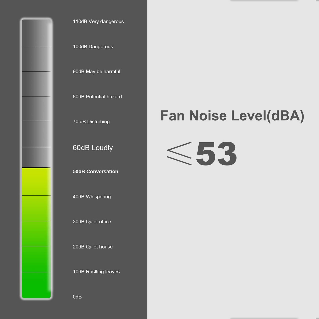 本製品の一番大風量状態のノイズは53dBAで、風量が強力ですが少しうるさく感じがあるかもしれないです。( フロアファンの動作ノイズ相当)