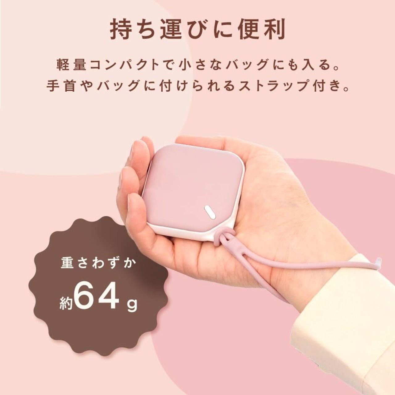 アイリスプラザ 充電式カイロ 速暖 PSE認証 LEDライト付き 防災 災害 避難用 キャンプ 通勤 通学 電子カイロ カイロ スクエア ピンク(Pink)