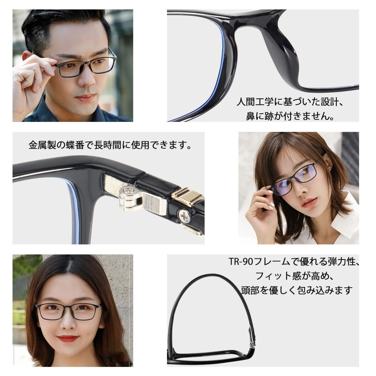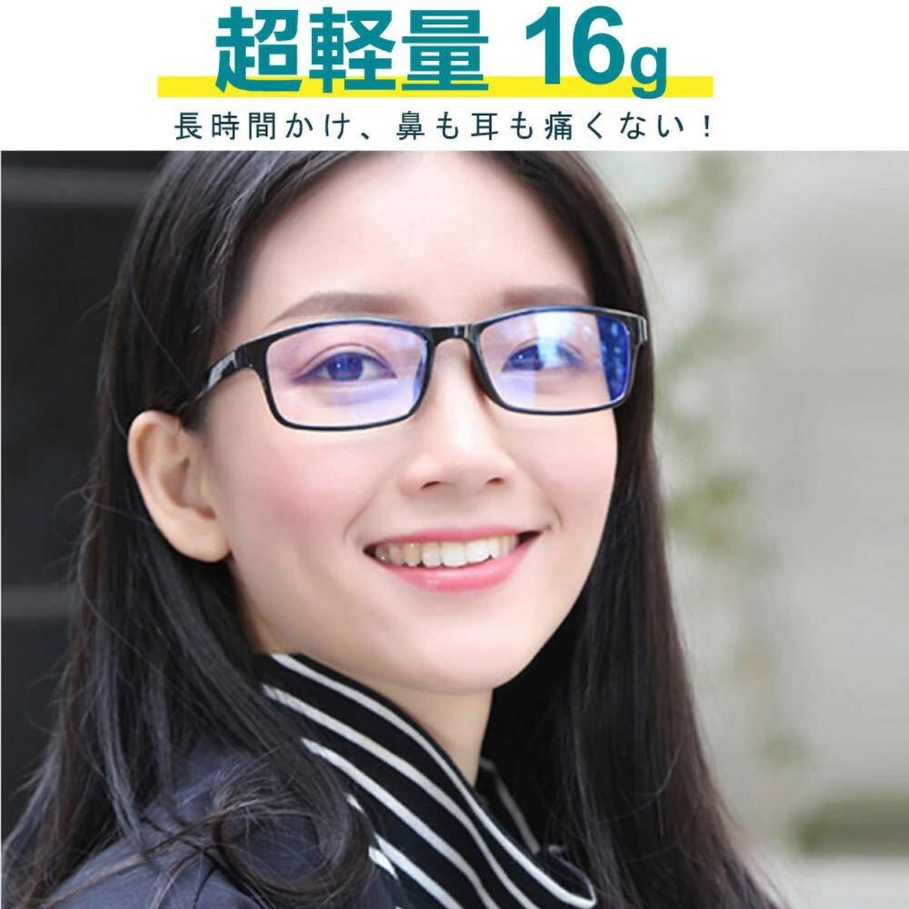 【伊達メガネ・超軽量16g】メガネをかけているのを忘れしまうくらいのかけ心地、耳やこめかみが痛くなりにくいように柔らかく超軽量のTR-90素材を採用することとなる。顔幅に合わせて優しくフィットするので頭部への締め付けを感じにくく、ブルーライトカット メガネ の全体は16gなので、耳や鼻はストレスが感じなく、長時間に使用できる。