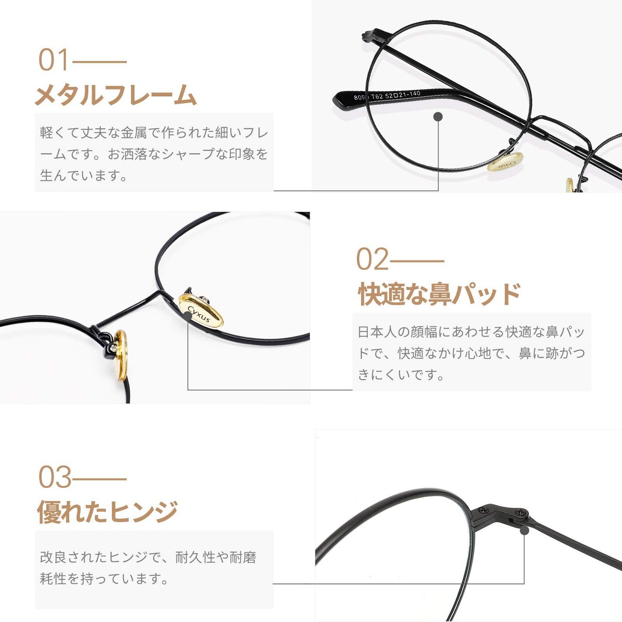 [Cyxus] シクサズ ブルーライトカットメガネ 度なし 透明レンズ PCメガネ 輻射防止 ファッション眼鏡 ステンレス お洒落 男女兼用