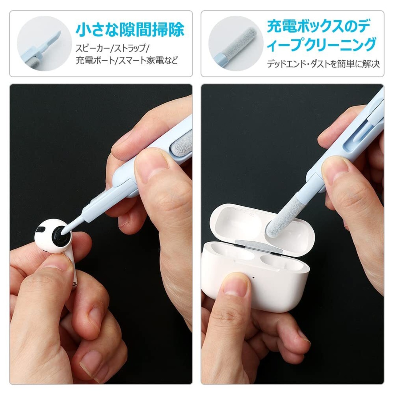 【ハイ実用性】シリコンチップは、ヘッドホン、キー、その他のアイテムの隙間の頑固な汚れを取り除くために使用されます。高密度ブラシは、イヤホンのサウンドホールから汚れやほこりを取り除くために使用されます。群がるスポンジは、イヤホン充電ケースの内側からほこりを取り除くために使用されます。フランネルワイプは、キーボード、デスク、ウィンドウレールなどの大きなほこりの多い場所を掃除するために使用されます。