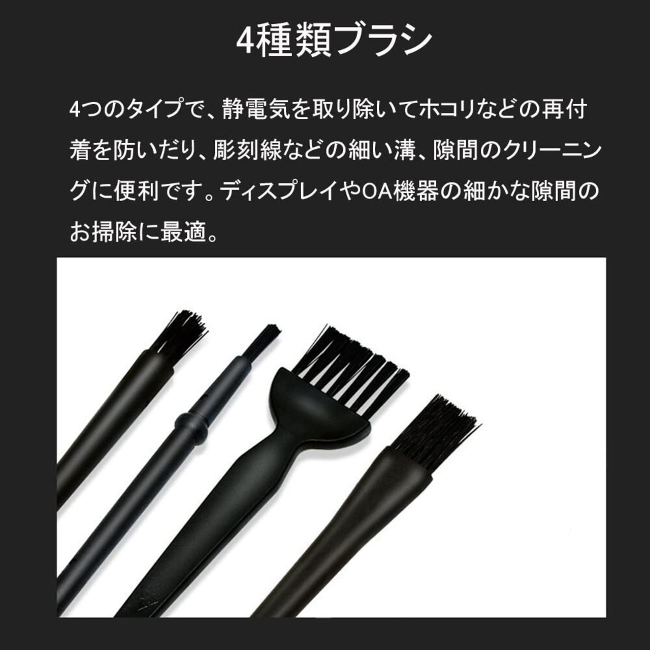 【多機能】静電気を取り除いてホコリなどの再付着を防ぎ、彫刻線などの細い溝、隙間のクリーニングにもできます。さまざまなサイズのブラシが付属しており、手の届きにくい場所を簡単に掃除できます。