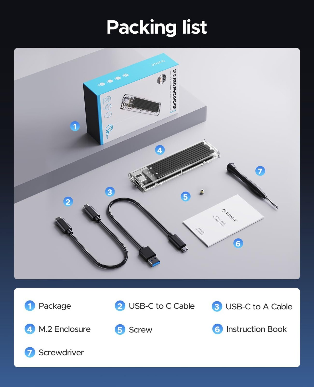 【10Gbps】 ORICO M.2 NVMe SSDケース M-Key / B&M Key(Nvmeのみ) USB3.2 Gen2 10Gbps 外付けケース UASP Trim 対応 2230/2242/2260/2280 SSD対応 ダブルケーブル付属 M.2 SSD 変換アダプタ 透明 TCM2-BK