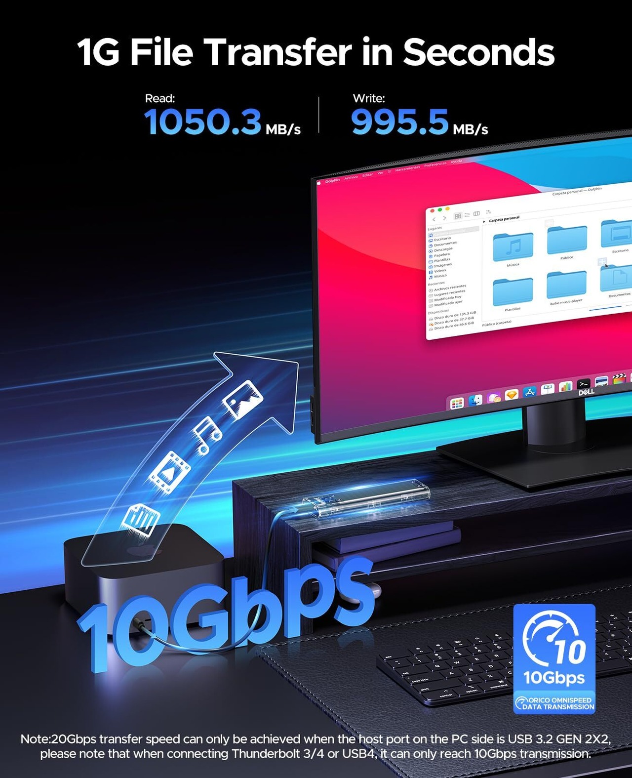 【10Gbps超高速】NVME M.2 SSDをUSB-C Gen2に変換するM.2 SSDケースです。USB3.1 Gen2通信プロトコル採用、UASPとTRIM機能も対応します、最大転送速度は10Gbps(理論値)です。