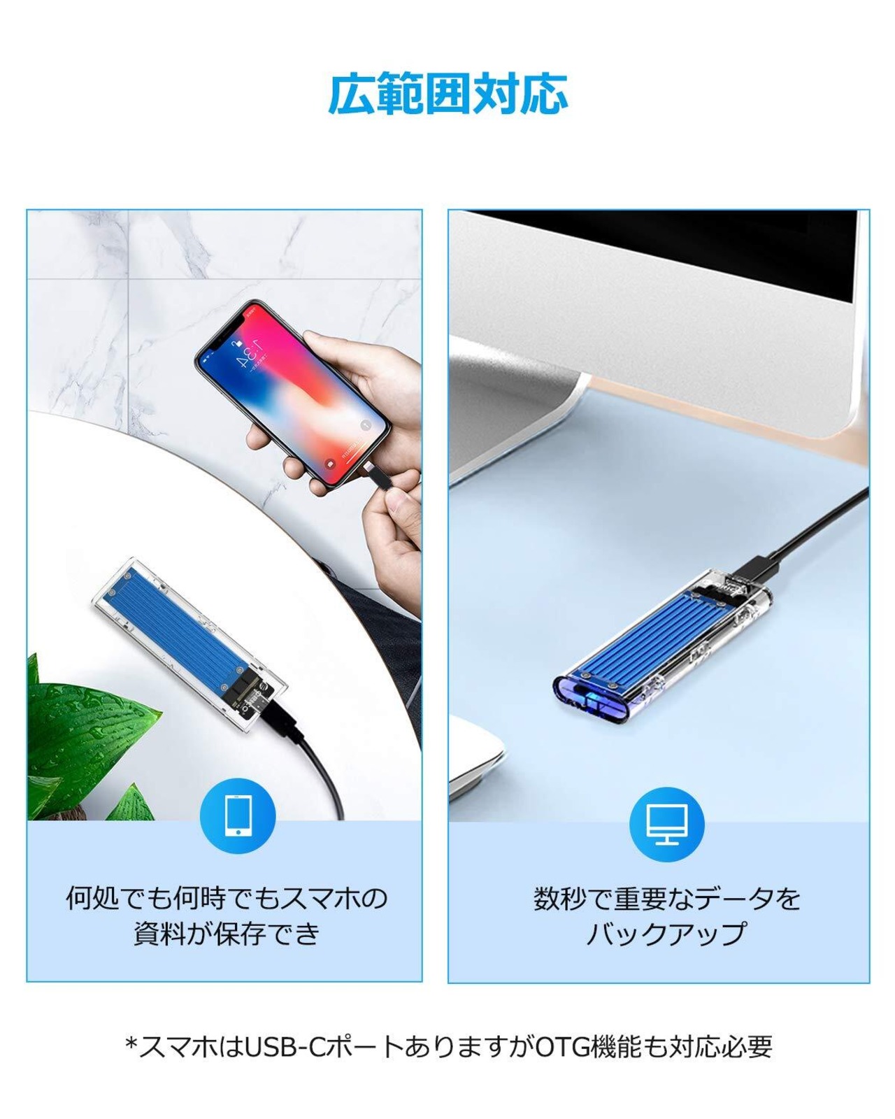 【機能性】透明 NVMe ケースは、最大8TBまでのSSDを搭載可能。高品質のマスターチップ採用、安定で快速にデータ転送します。10.7*3.4*1.2cmサイズで、持ち運びに便利です。Mac OS、Windows 7/8/10、Linuxなどシステムを対応します。