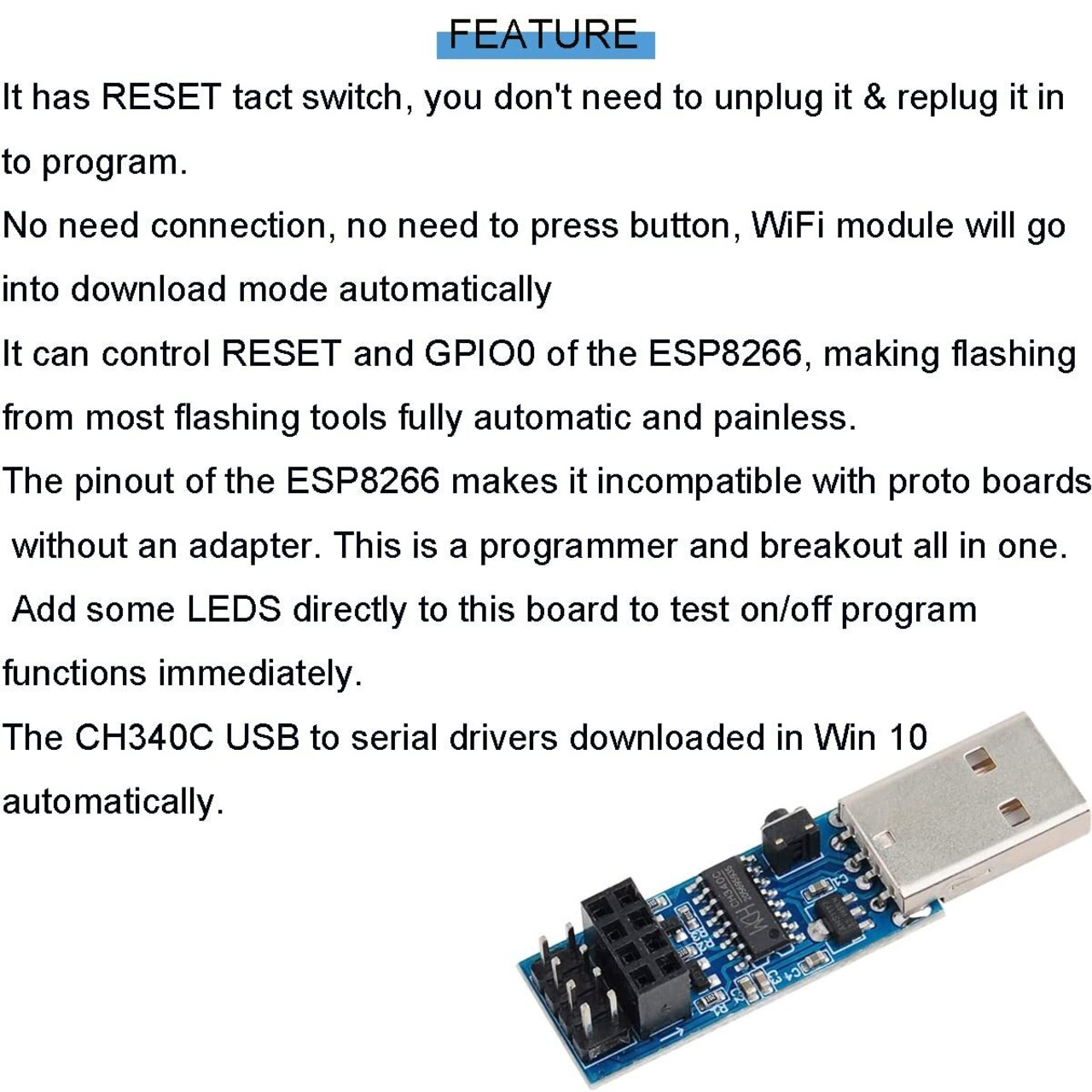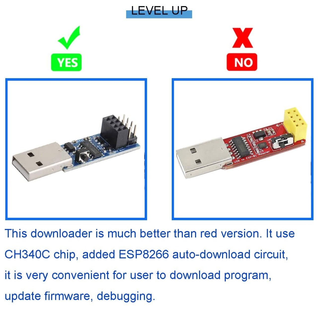 Youmile 2個 ESP8266 USB-ESP8266アダプタモジュール CH340C ESP-01 ESP-01S プログ WiFi プログラマダウンローダアダプタリセットボタン付きデュポンケーブル付き