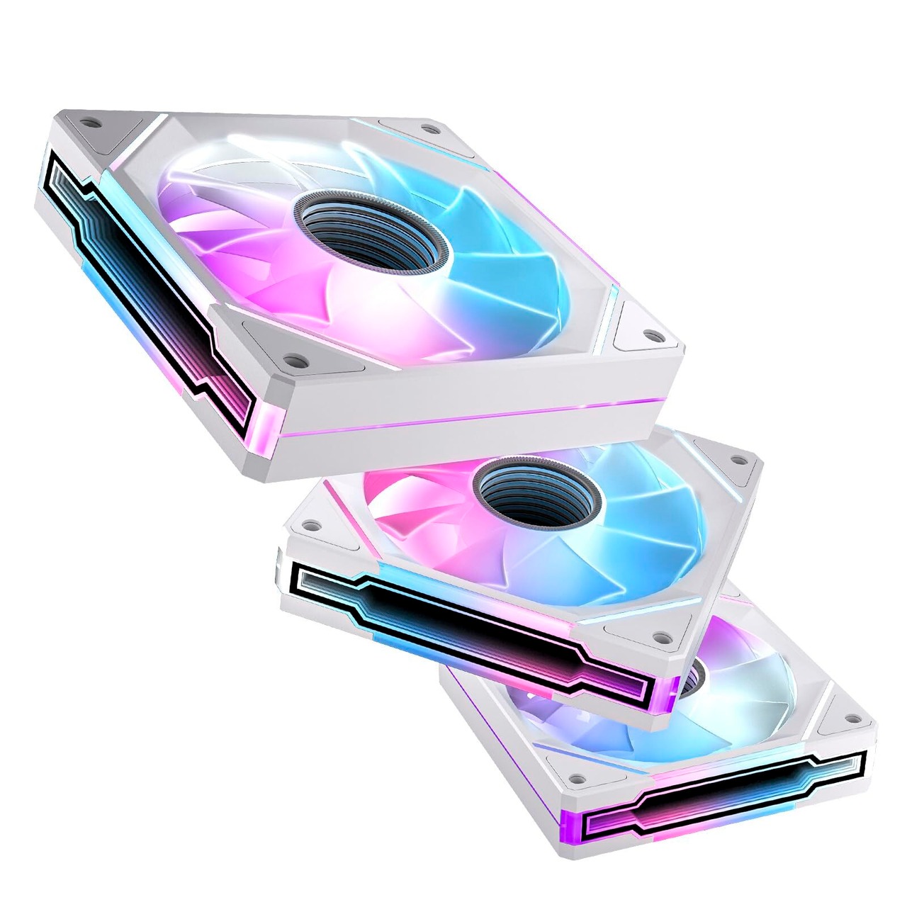 AsiaHorse PCケースファン 120MM 3本 1800RPM インフィニティミラーARGB PWM ファン 4Pin PWM、5V 3Pin ARGB 正向きファンブレード(排気)/高精度・高性能HDBベアリング/作動時間50,000時間/24個のLEDライト。Asus Aura ASRock GIGABYTE MSI RGBとの互換性あり AMICI-5GT-White