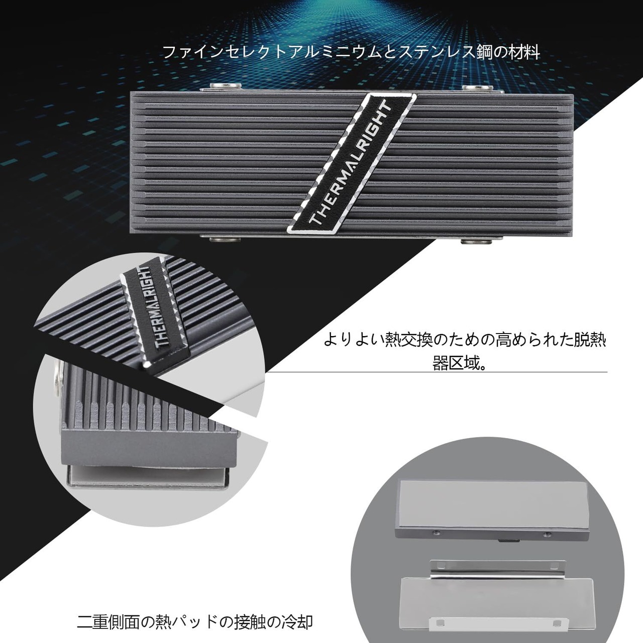 [両面ヒートシンク】熱伝導率の良い高性能ヒートシンクシリコンフィルムで、SSD 2280ヒーシンク冷却を両面に積層し、アルミニウムの組み合わせで、最適な冷却性能を可能にします。
