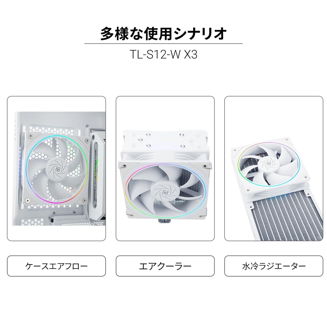 Thermalright TL-S12W X3 120 mmCPU放熱ファンと細絞りARGB、PWMインテリジェント温度制御、23.2デシベル以下の騒音、白色シャーシ静音ファンはシャーシ、CPU放熱器と水冷放熱、3連パックセットに適している