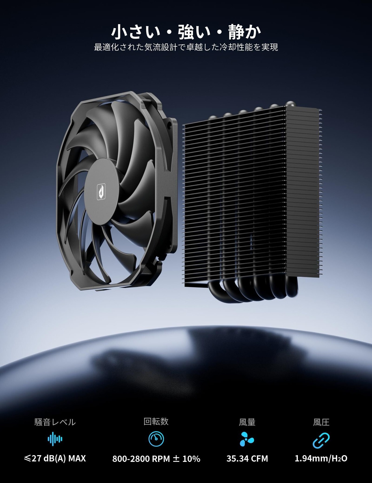【超コンパクト全高45mm】H45薄型cpuクーラーはMini ITXケースのような狭小スペースにも容易に設置可能ながら、冷却性能はそのまま。高さわずか45mmでフル冷却性能を発揮し、小型フォームファクタービルドでもスムーズなインストールを実現