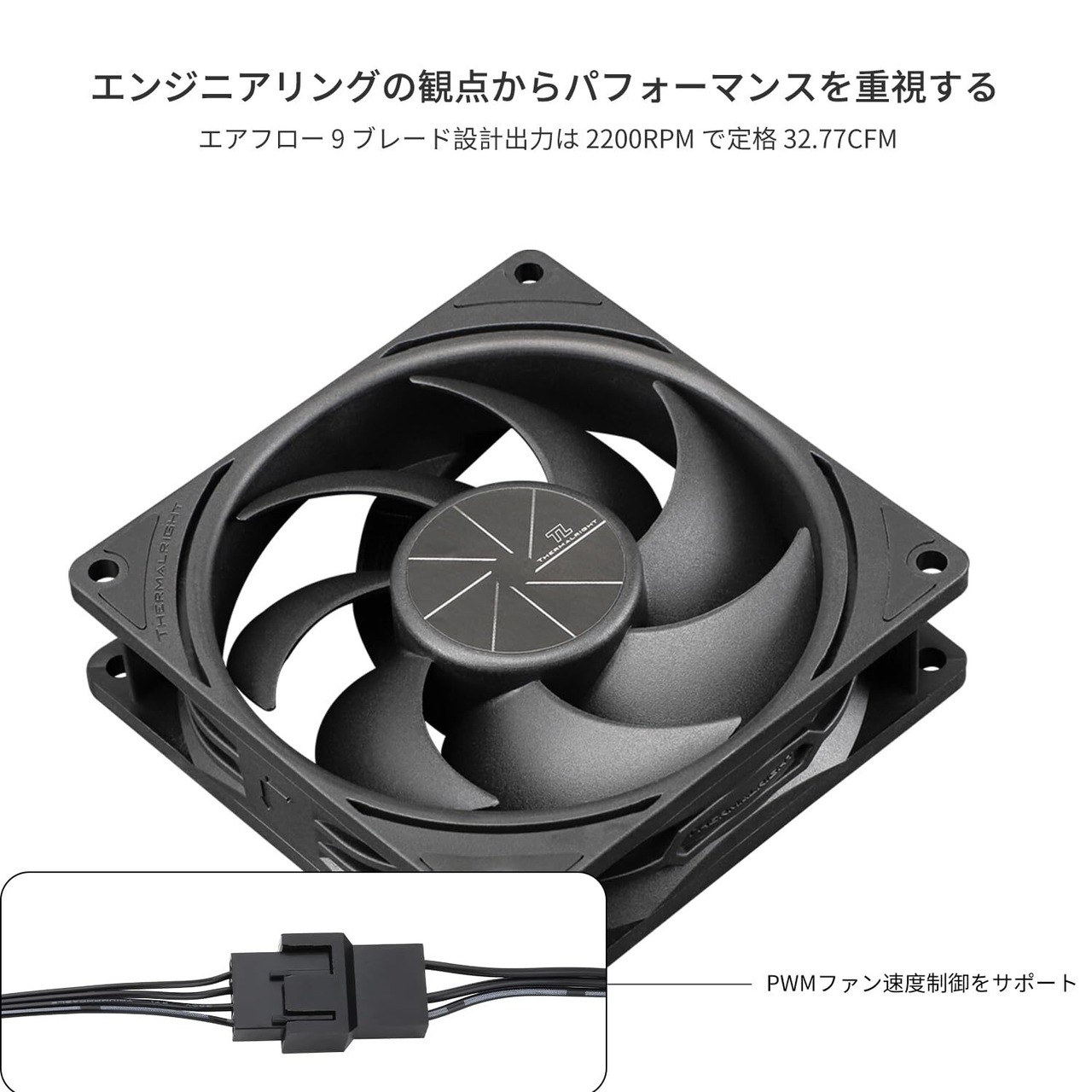 【高性能冷却ファン】マザーボードの温度に応じて速度を決定できる4PIN PWMファンケーブルインターフェースを介したマザーボードの自動速度制御、最高速度2200RPM。