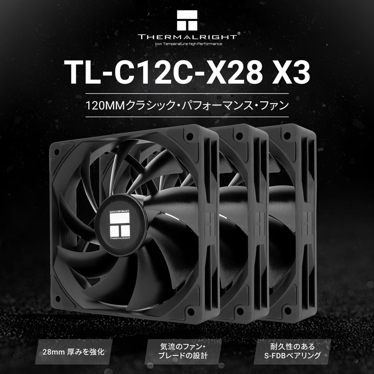 Thermalright TL-C12C-X28 X3 CPUファン、ブラック冷却ファン、1550RPM速度のPCファン、120mmコンピューターケースクーラーファン、ケースおよび液体クーラーおよびCPU冷却用PWM制御ファン、厚さ28mm(3つのファンを含む)