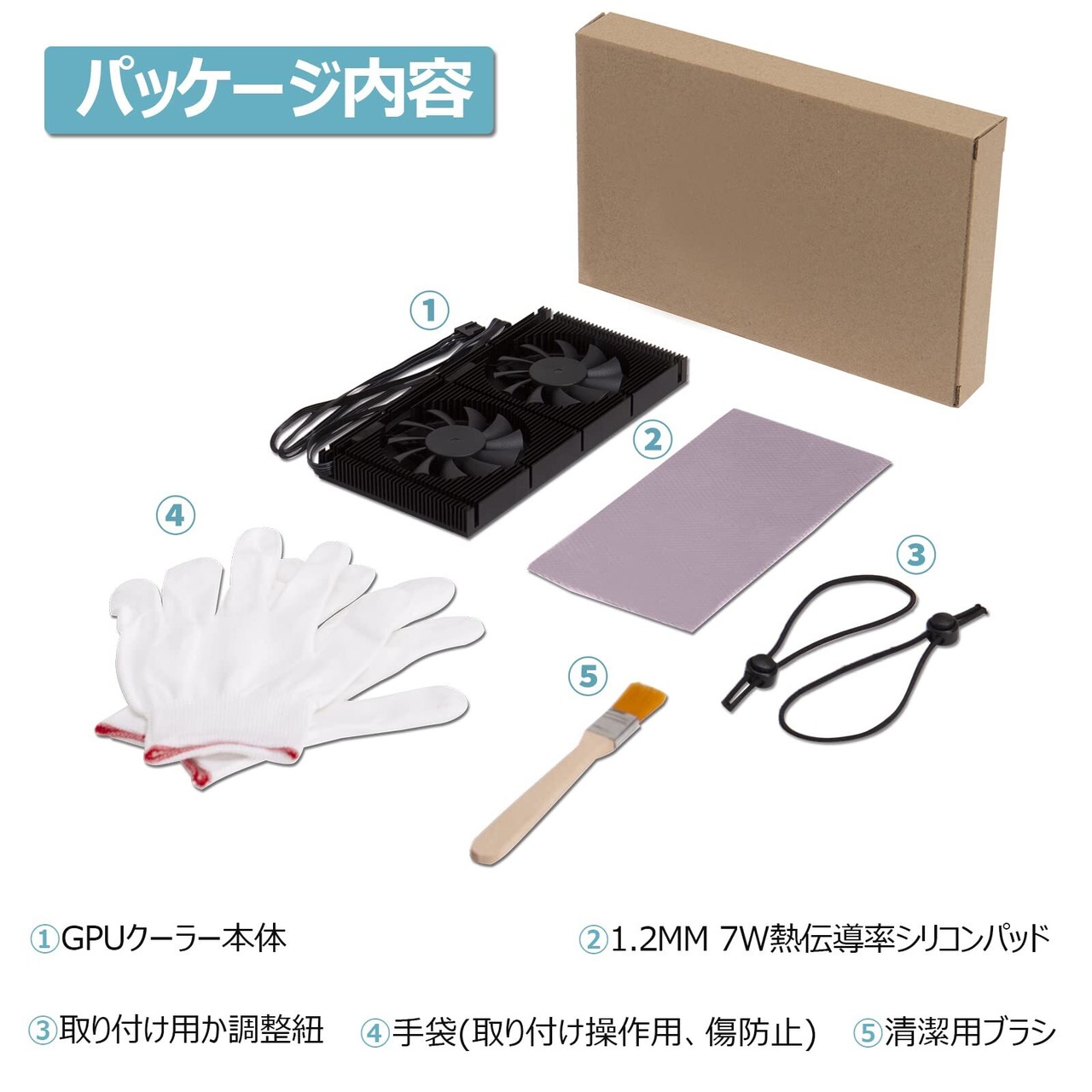 7W熱伝導率シリコンパッドつきで、グラフィックカードをちゃんとうに冷やせます。