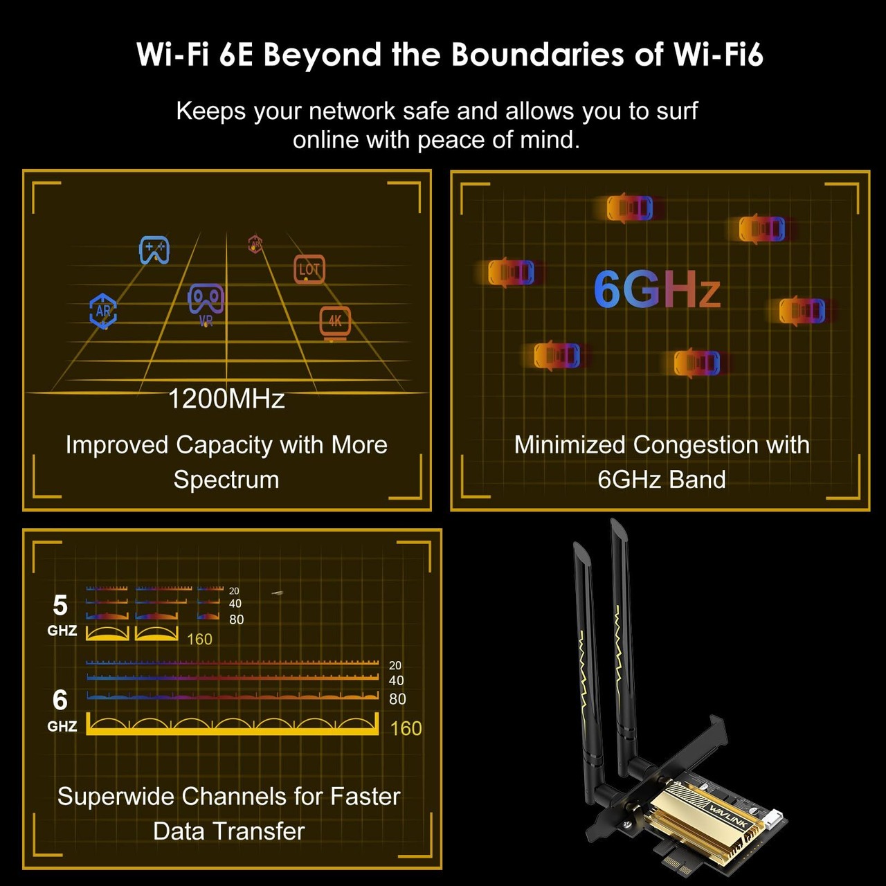 WAVLINK WiFi 6E AX5400 PCIe WiFiカード(デスクトップPC用)、トライバンドAX210 ワイヤレスアダプター、Bluetooth 5.3、MU-MIMO、OFDMA、WPA3、薄型ブラケット、ヒートシンク、Windows 11/10、Linux対応